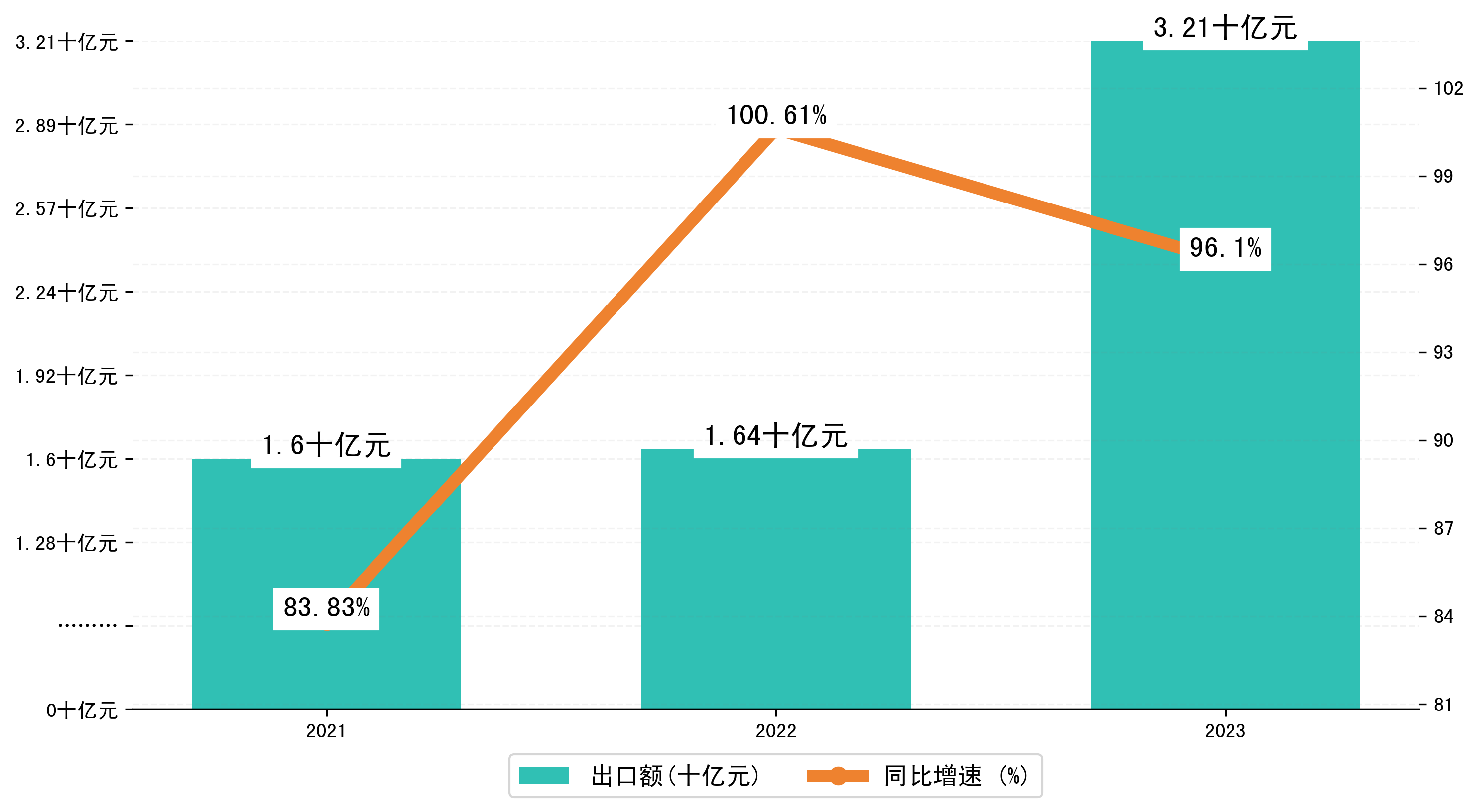 以人民币计,2023年1-5月宝鸡市出口额为32,1091.9962万元,相比上年同期增加了15,7350.5974万元,同比增加了96.10%。