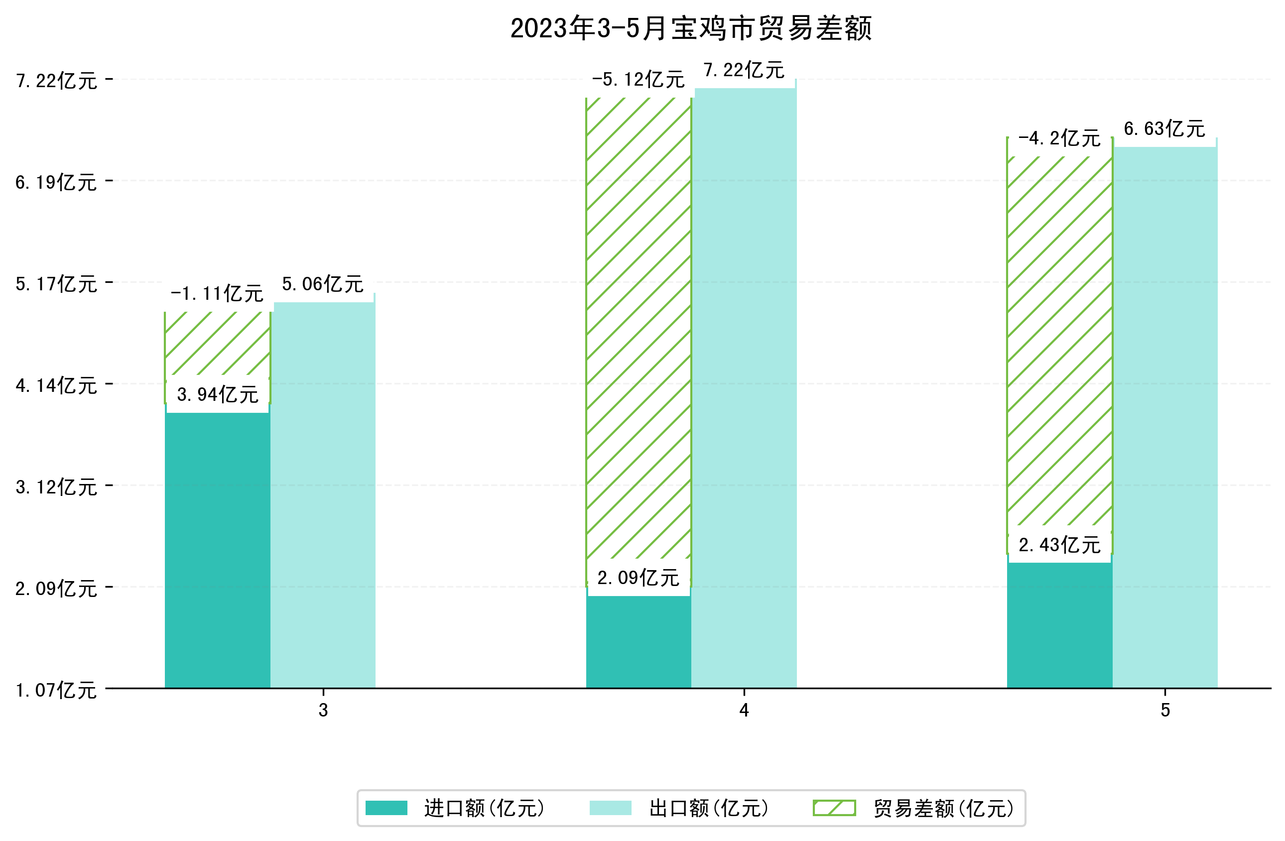2023年5月宝鸡市进出口总额及进出口差额统计分析