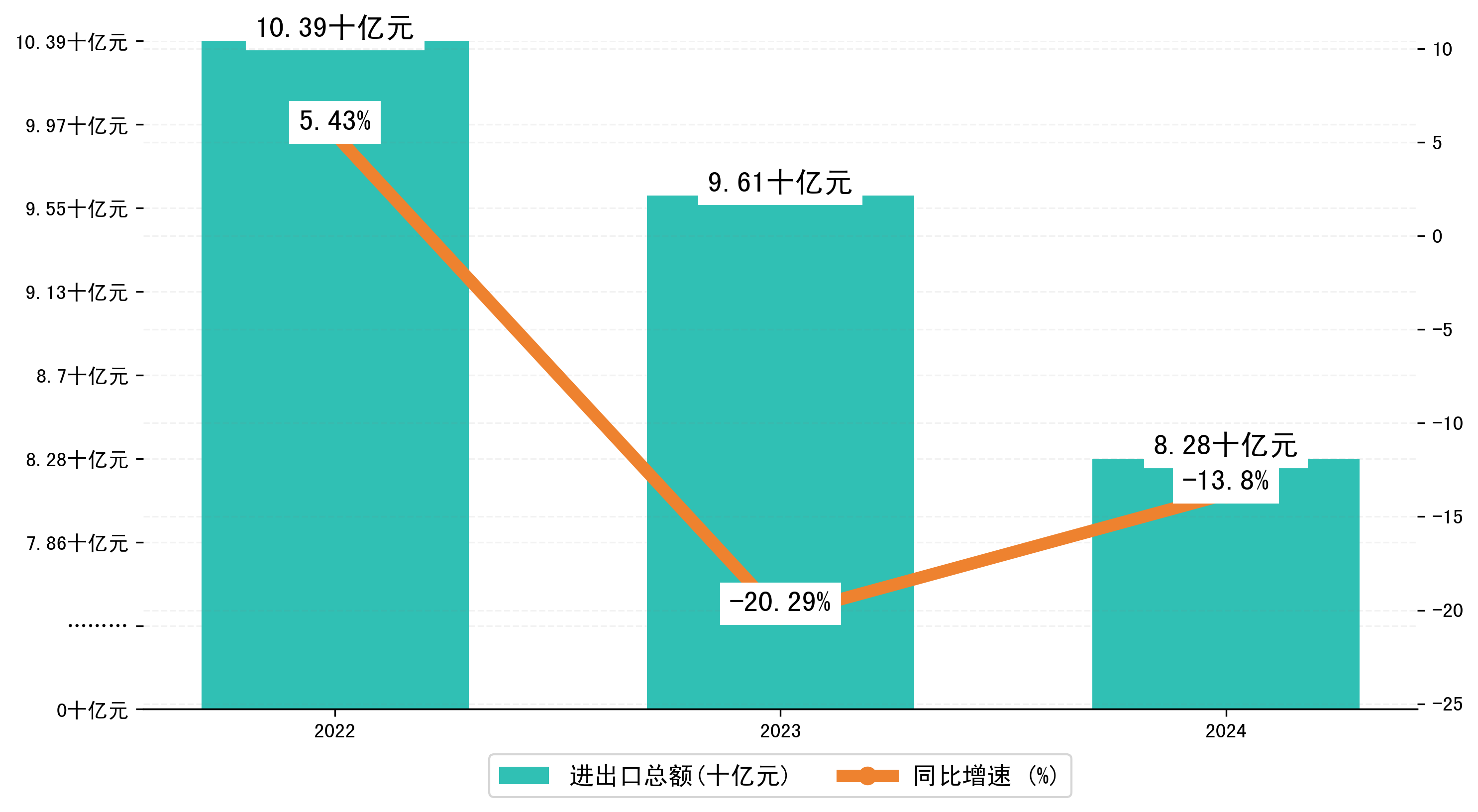 以人民币计,2024年1-11月宝鸡市进出口总额为82,8319.4777万元,相比上年同期减少了13,2641.1701万元,同比减少了-13.80%。
