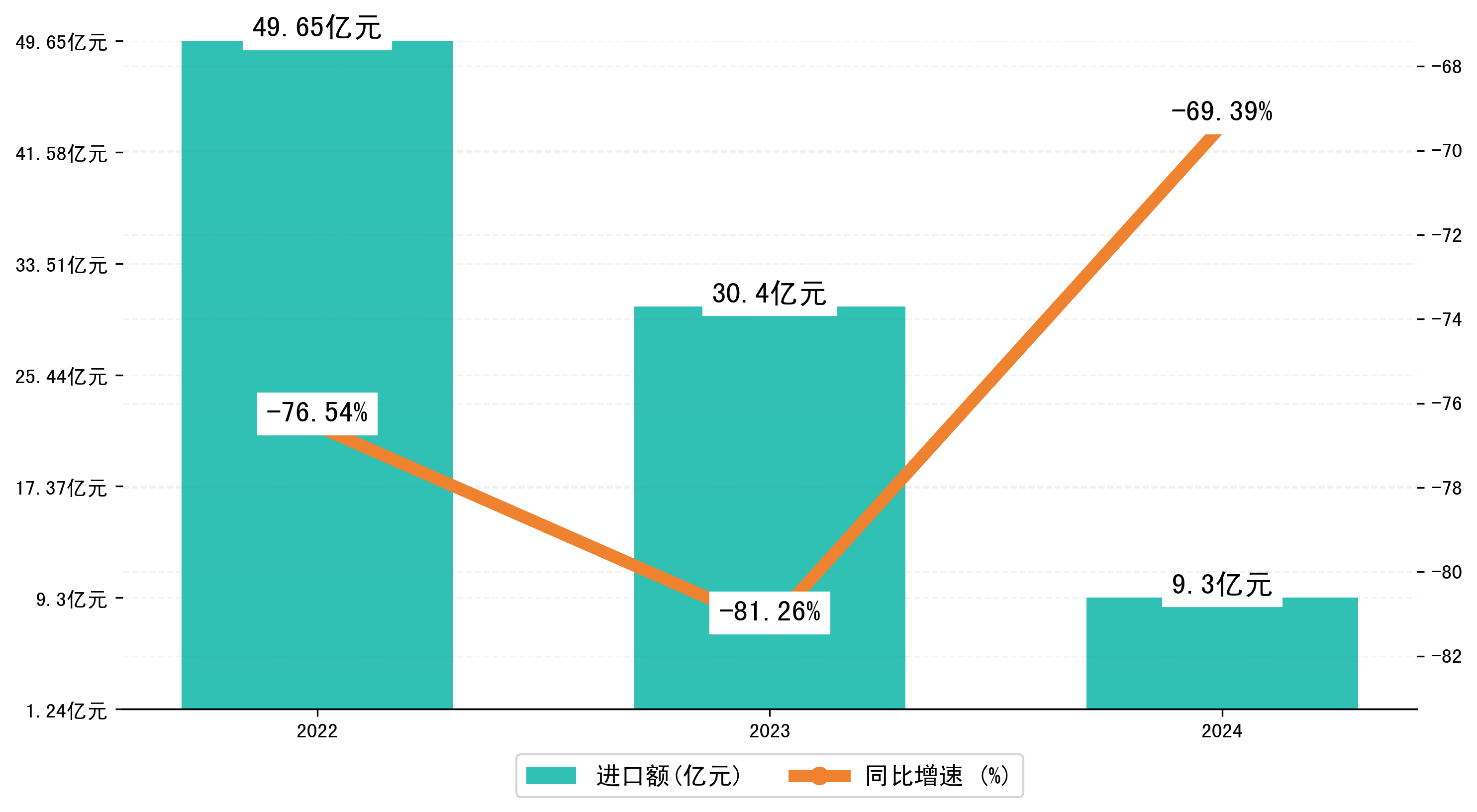 以美元计,2024年1-11月宝鸡市进口额为1,3093.221万美元,相比上年同期减少了3,0315.7561万美元,同比减少-69.80%。