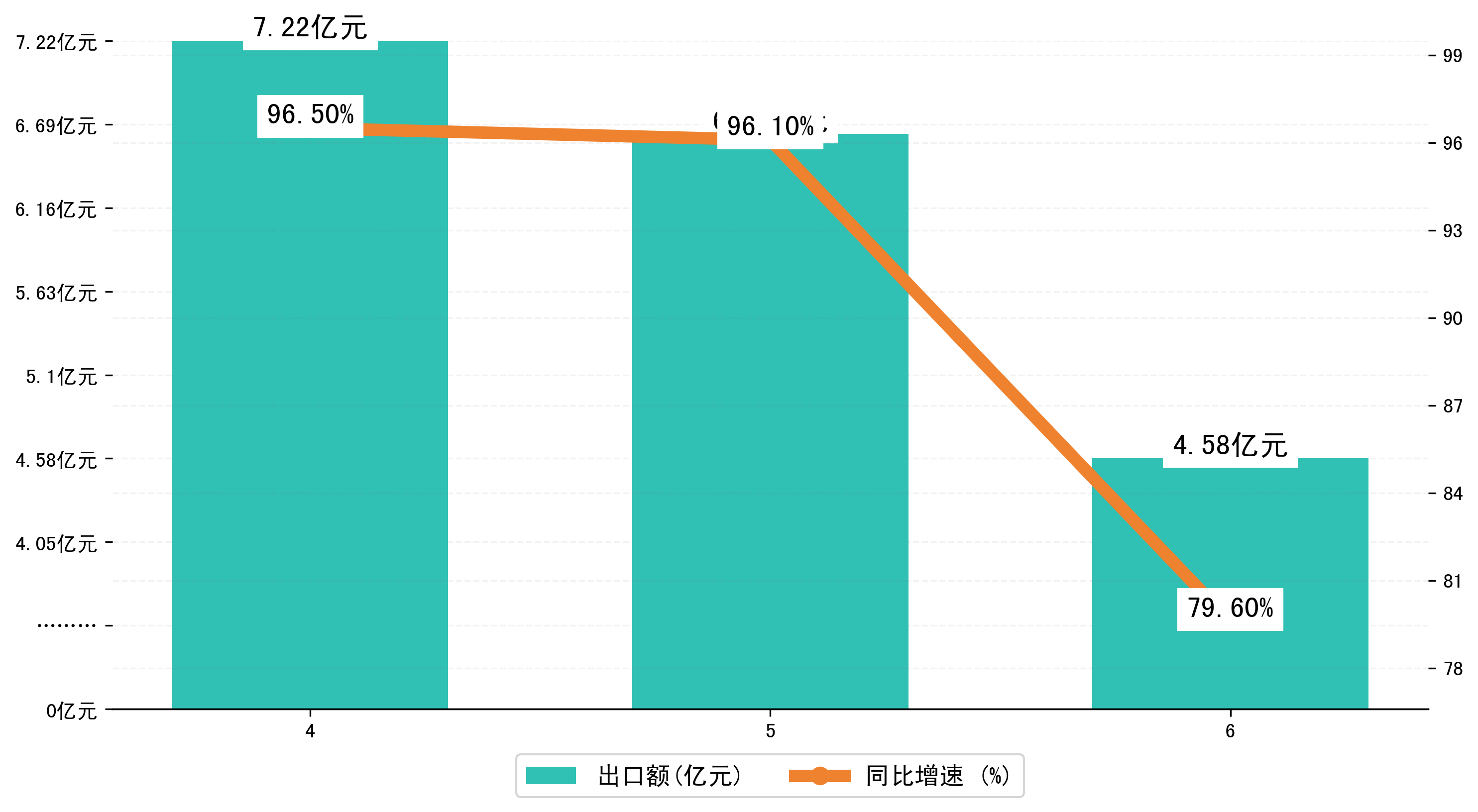 以人民币计,2023年6月宝鸡市出口额为4,5758.4703万元,相比上月减少了2,0495.7149万元;相比上年同期减少了862.6705万元,同比增加了79.60%。