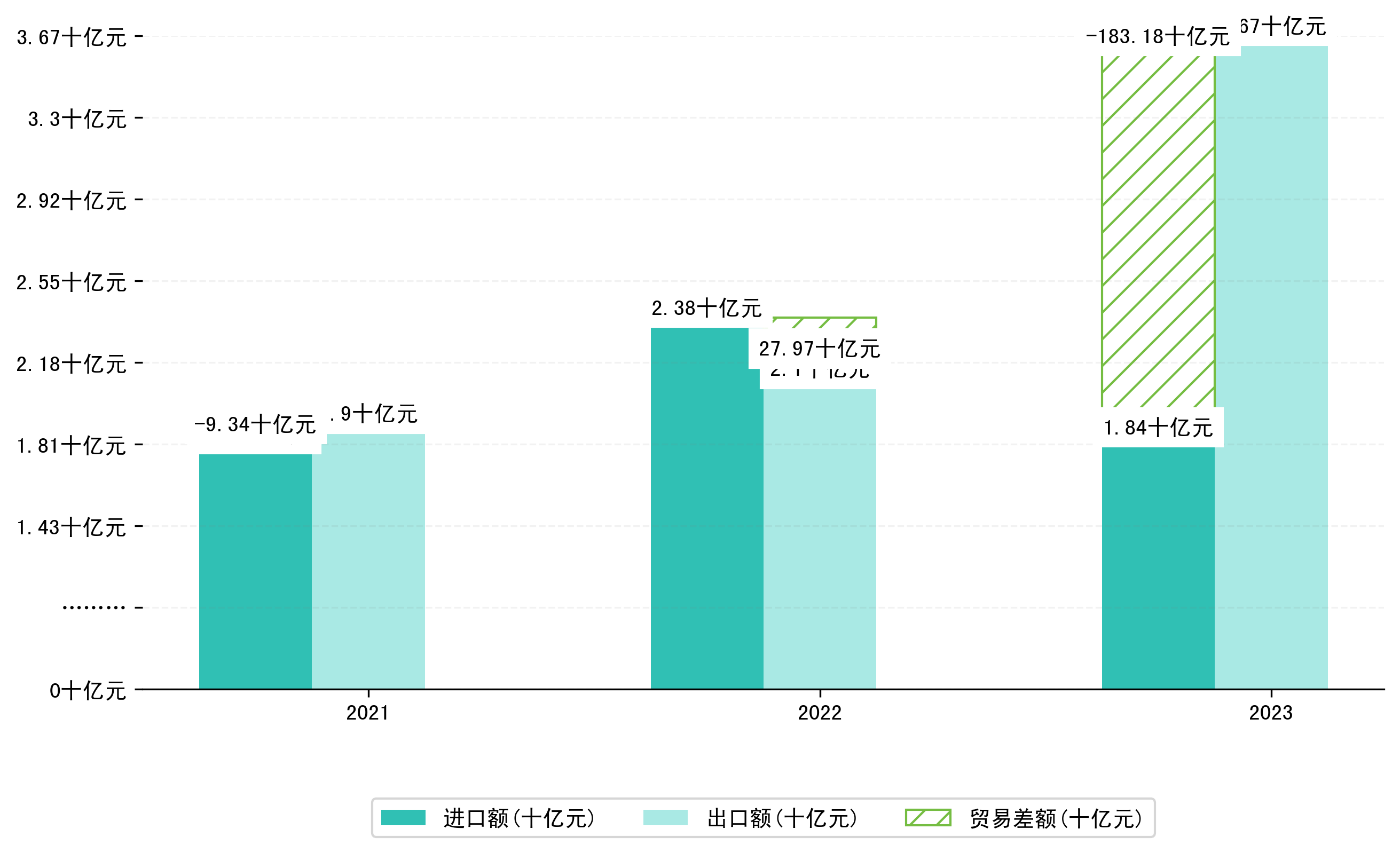 以人民币计,2023年1-6月宝鸡市贸易差额为18,3180,3807万元(贸易顺差),相比上年同期增加了21,1149,9957万元,同比增加-754.93%。