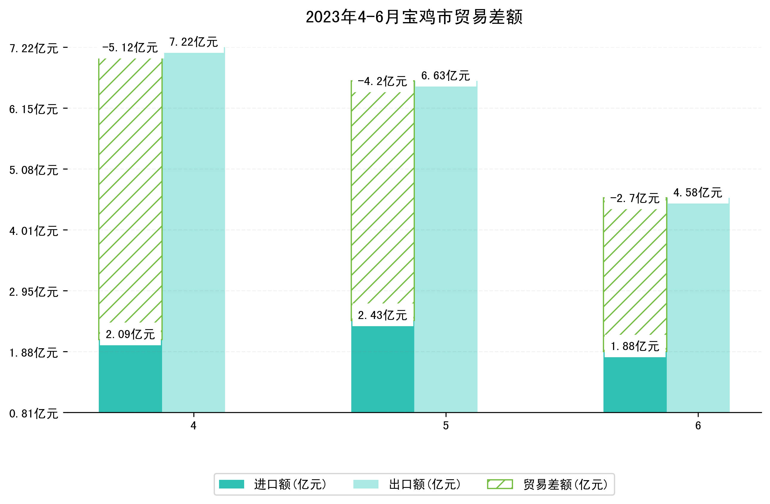 2023年6月宝鸡市进出口总额及进出口差额统计分析