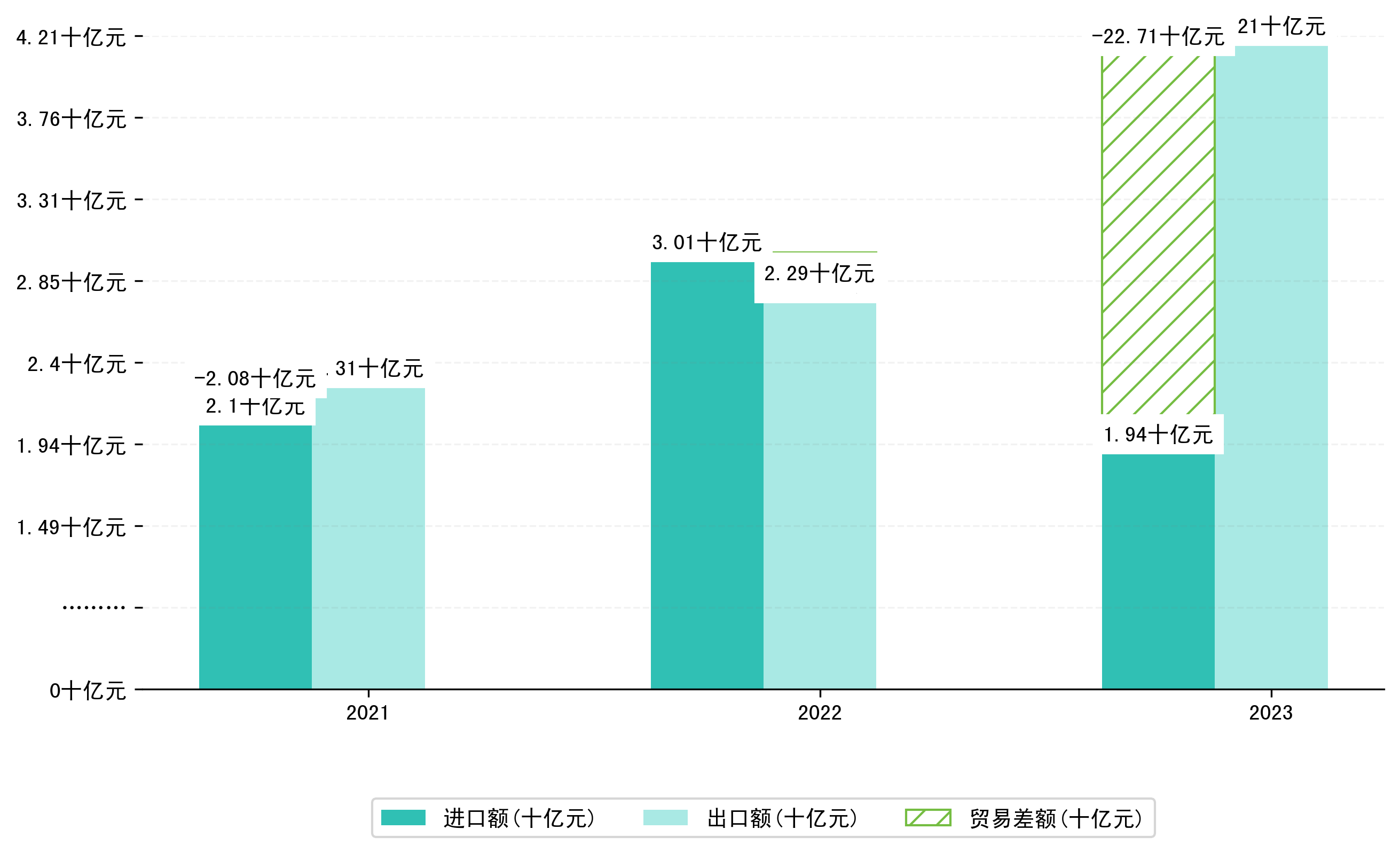 以人民币计,2023年1-7月宝鸡市贸易差额为22,7120,2079万元(贸易顺差),相比上年同期增加了24,9998,3570万元,同比增加-1092.74%。