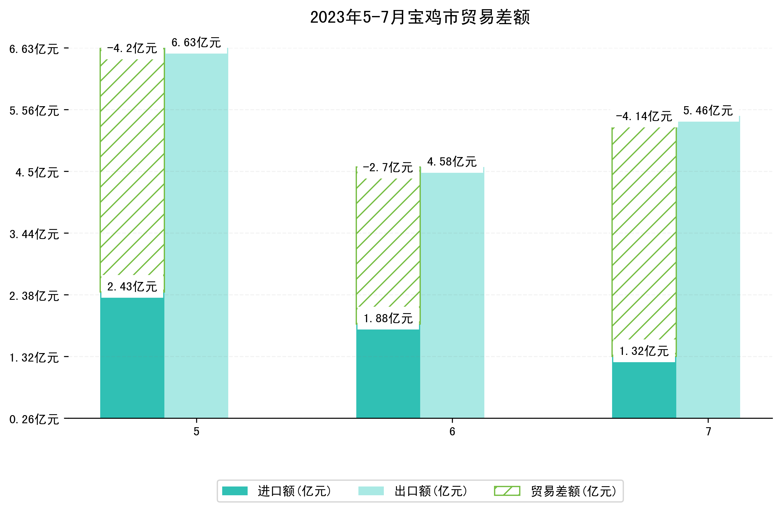 2023年7月宝鸡市进出口总额及进出口差额统计分析