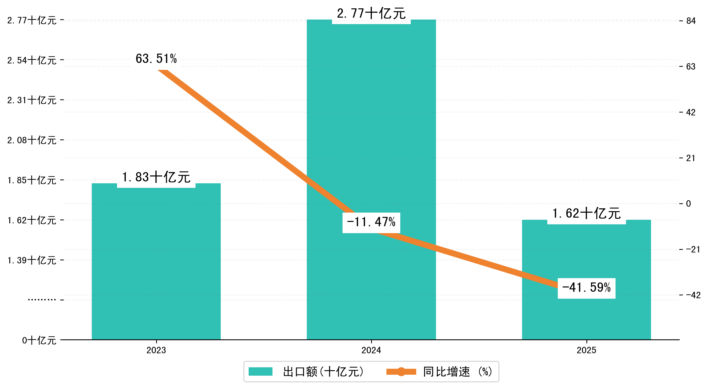 以美元计,2025年1-3月宝鸡市出口额为2,2515.6423万美元,相比上年同期减少了1,6452.3308万美元,同比减少-41.80%。