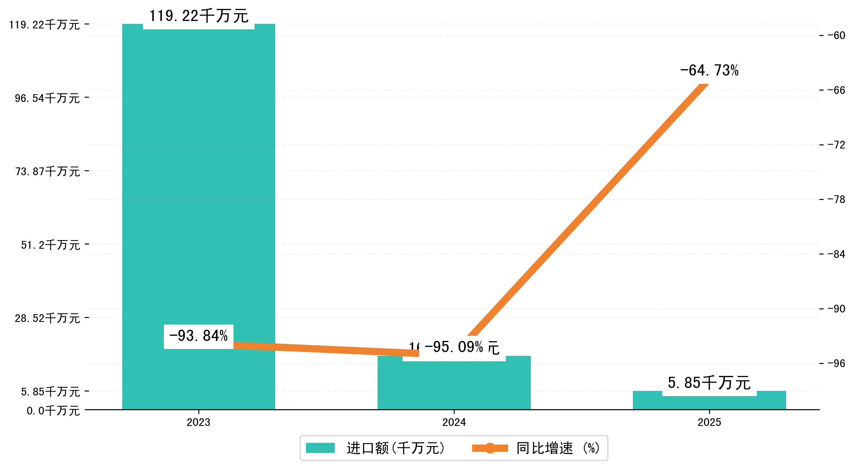 以人民币计,2025年1-3月宝鸡市进口额为5850.7536万元,相比上年同期减少了1,0739.5811万元,同比减少了-60.10%。