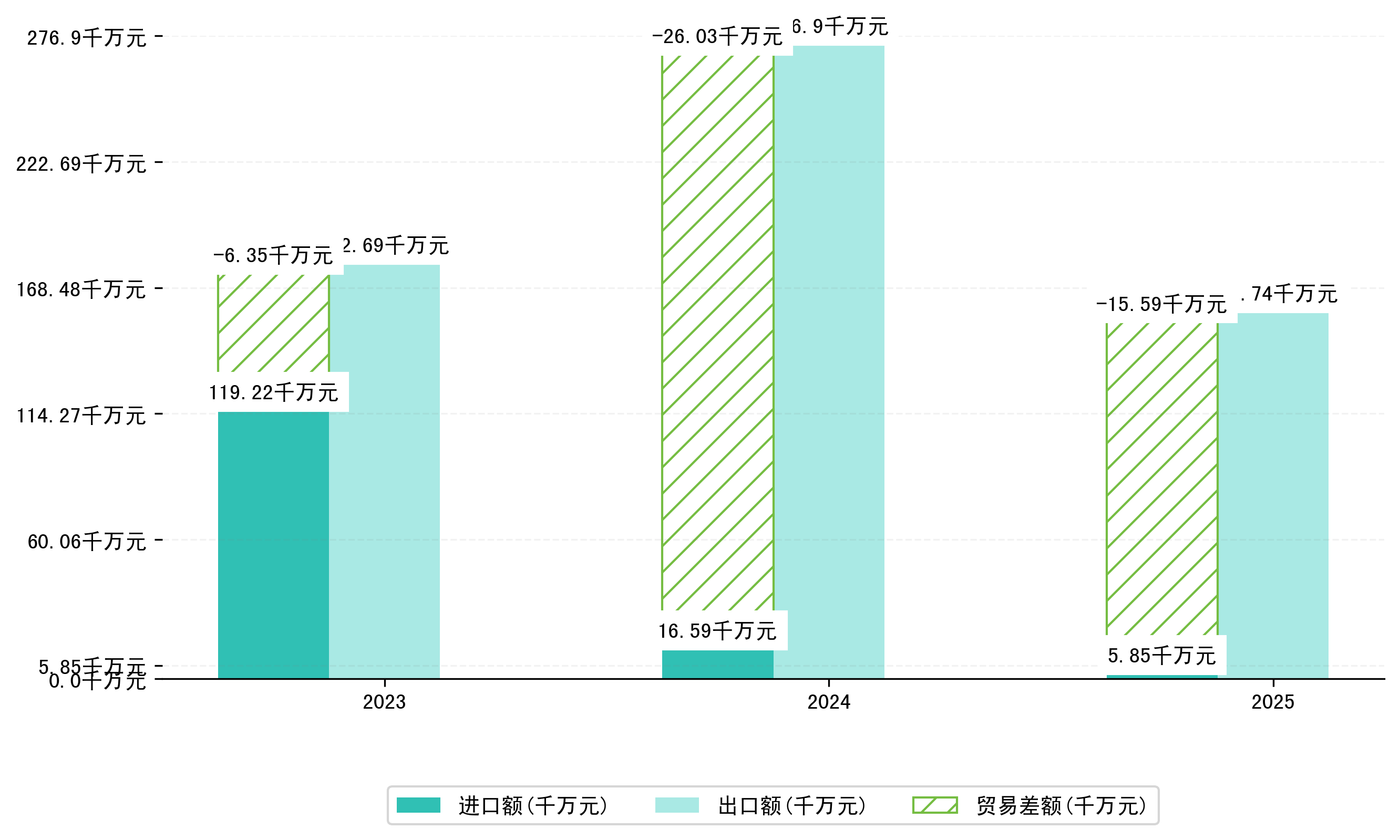以美元计,2025年1-3月宝鸡市进出口总额为2,3331.3082万美元,相比上年同期减少了1,7968.2146万美元,同比减少-42.80%。