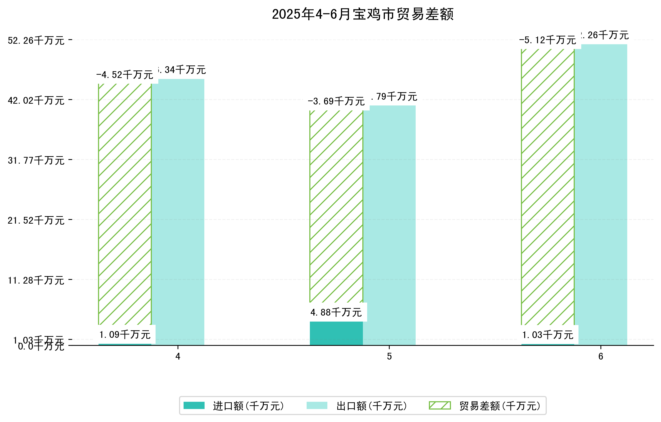 一、2025年6月宝鸡市单月出口总额及进出口差额统计分析