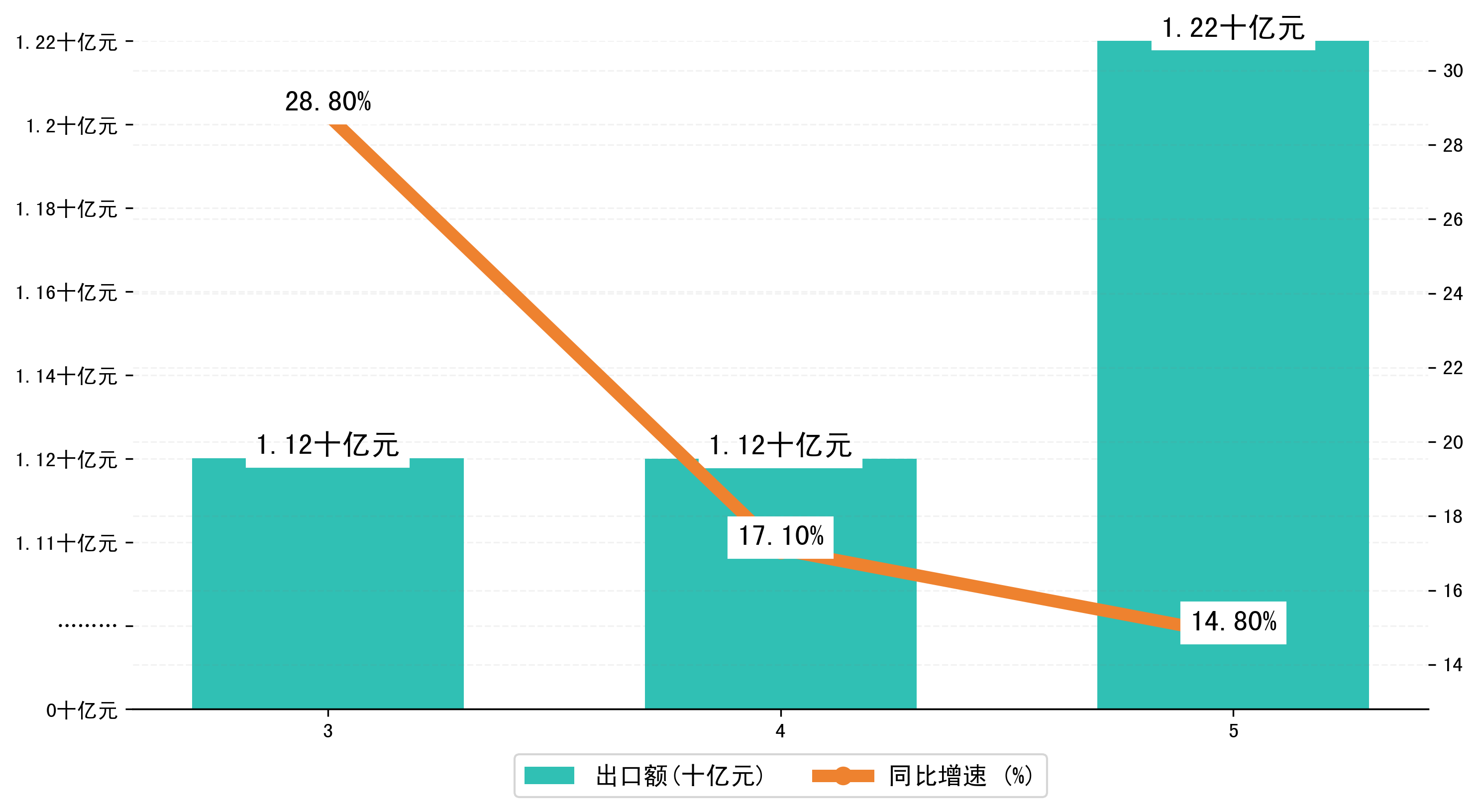 以美元计,2023年1-5月包头市出口额为7,7671.4061万美元,相比上年同期增加了4818.9438万美元,同比增加6.60%。
