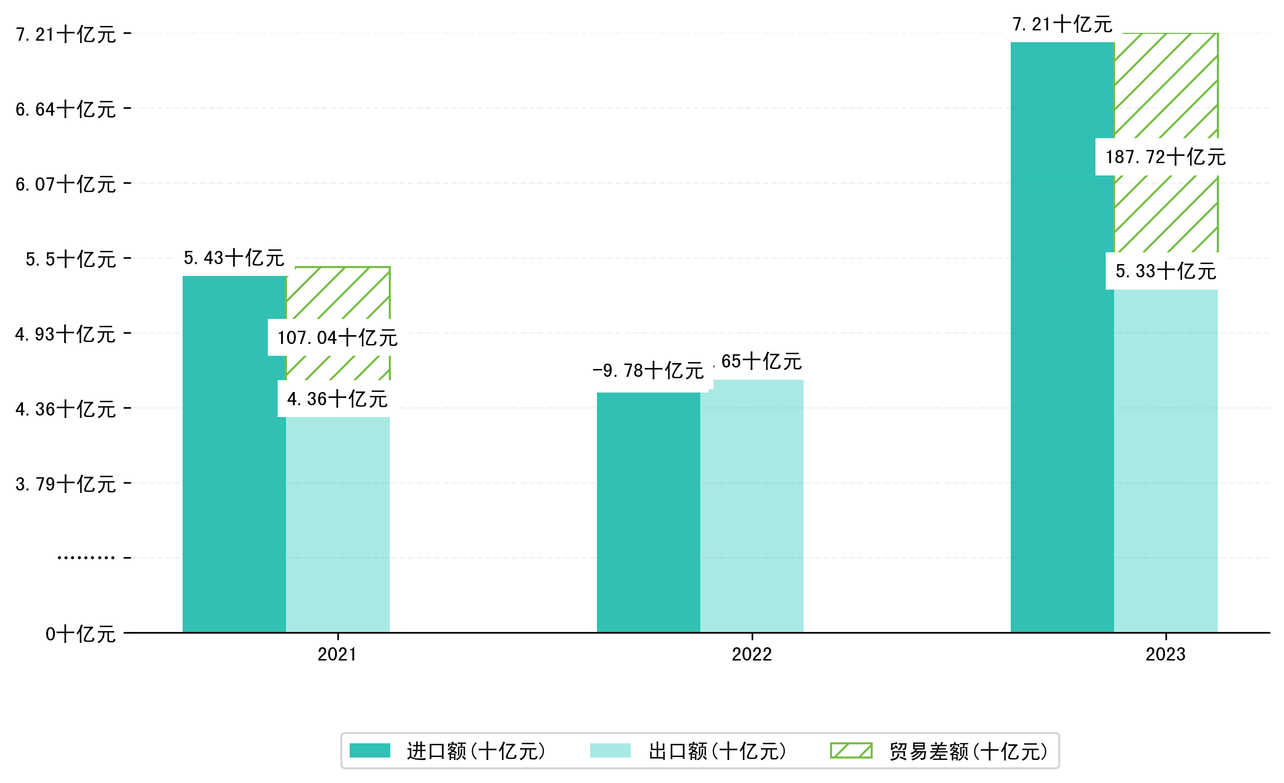 以美元计,2023年5月包头市贸易差额为6032,6676万美元(贸易逆差),相比上月增加了538,6672万美元;相比上年同期减少了4102,7677万美元,同比减少212.59%。