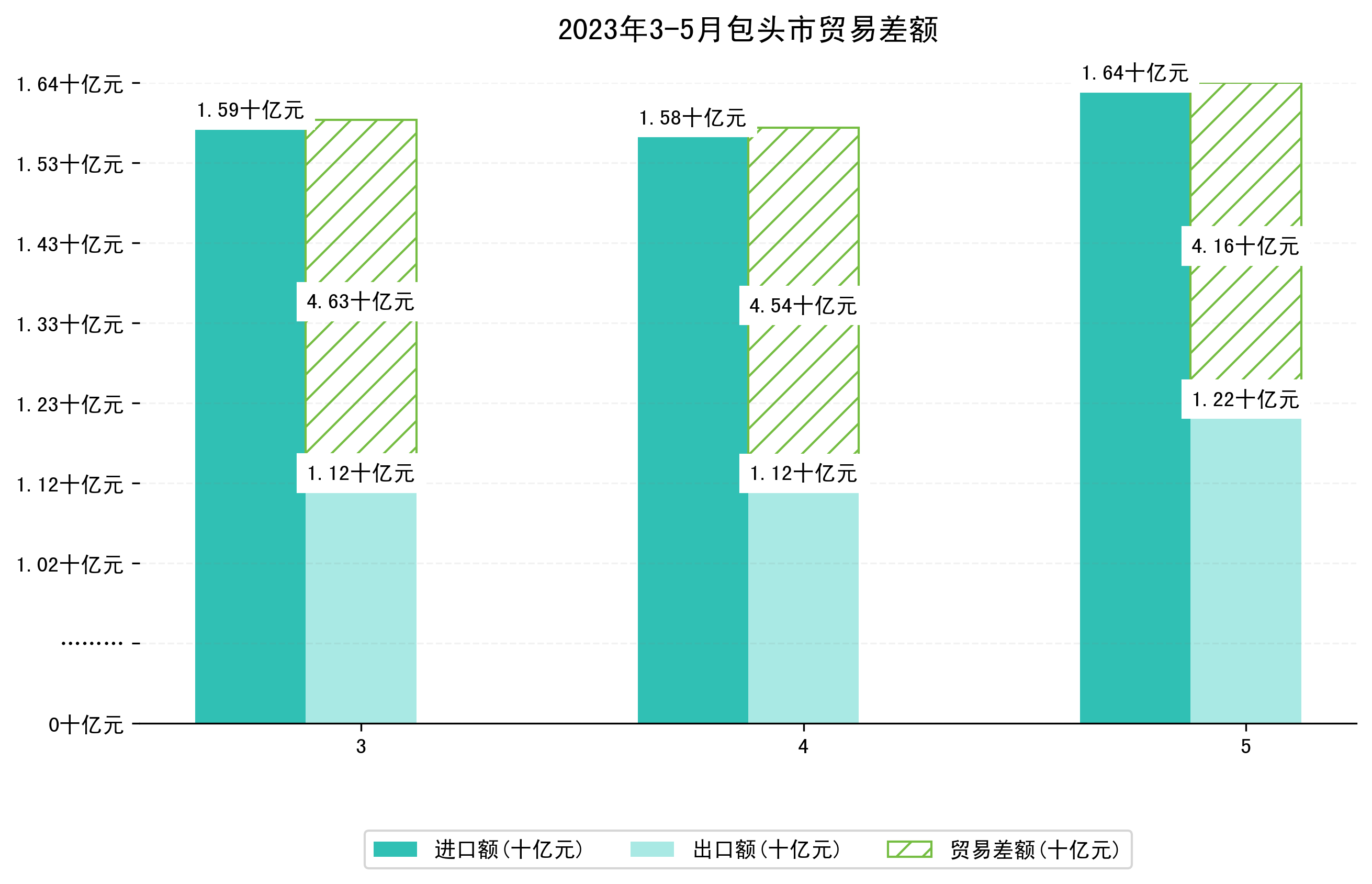 一、2023年5月包头市单月出口总额及进出口差额统计分析