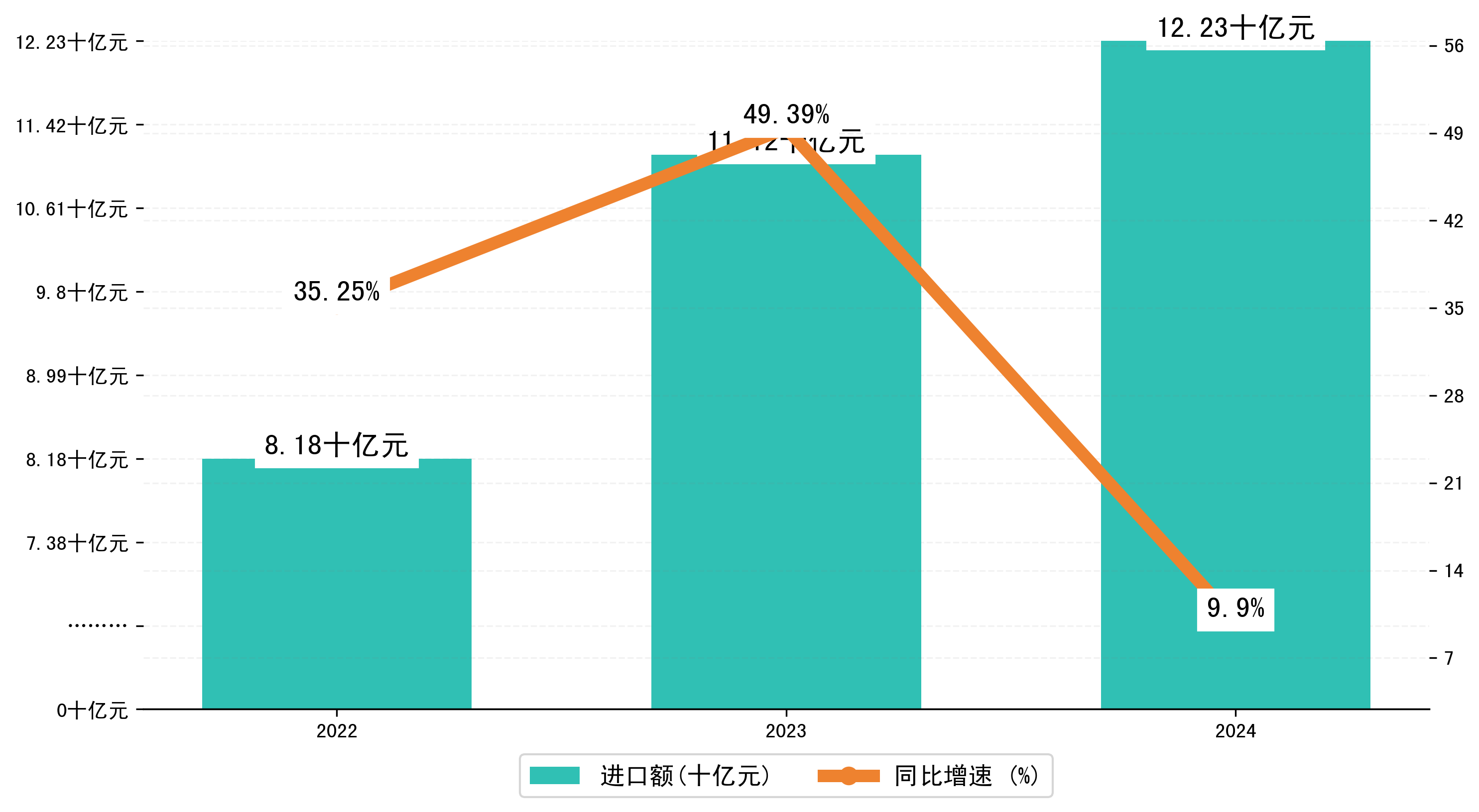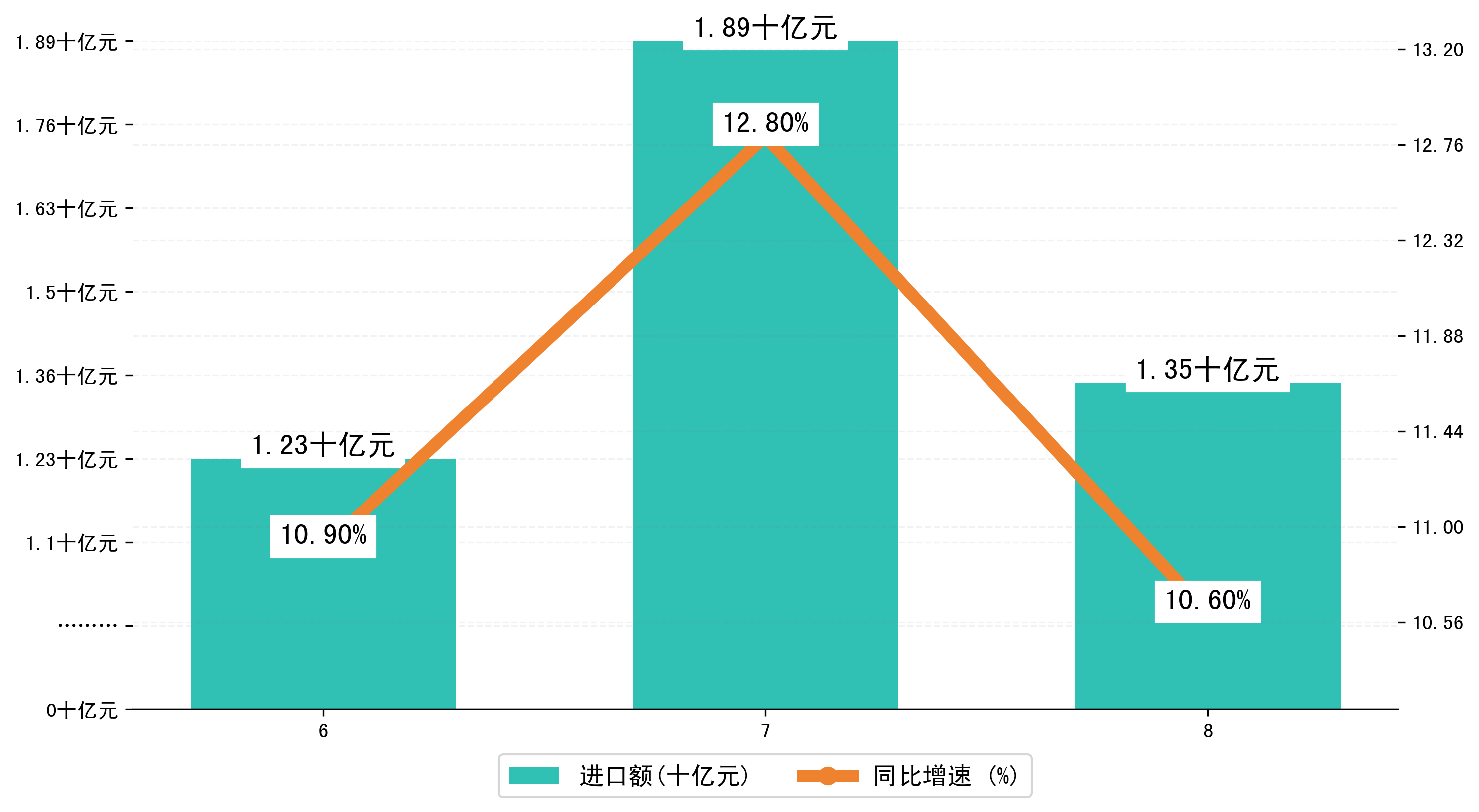 以人民币计,2024年1-8月包头市进口额为122,2539.7734万元,相比上年同期增加了11,0139.9626万元,同比增加了10.60%。
