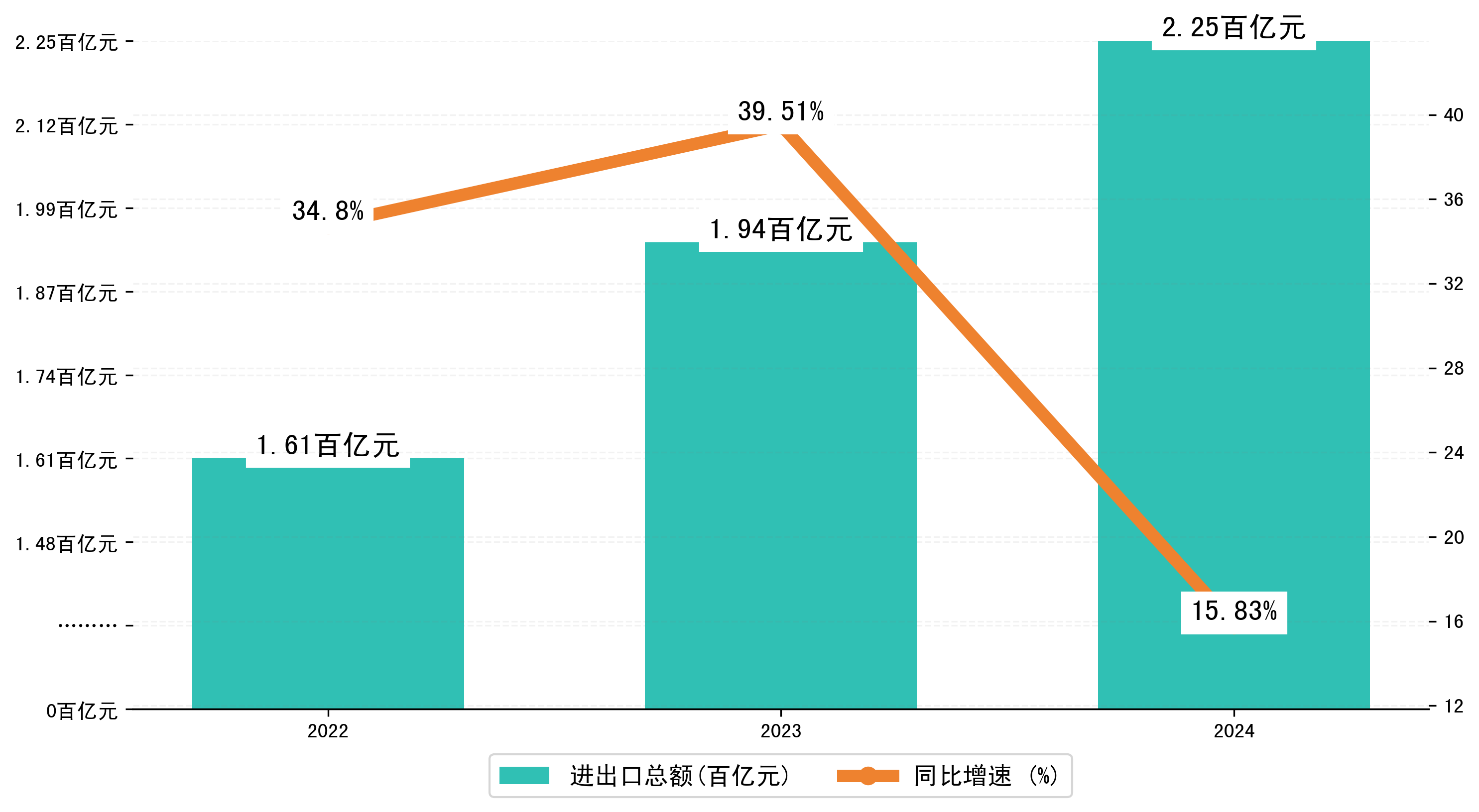 以人民币计,2024年1-8月包头市进出口总额为224,8600.9584万元,相比上年同期增加了30,7299.3286万元,同比增加了16.30%。
