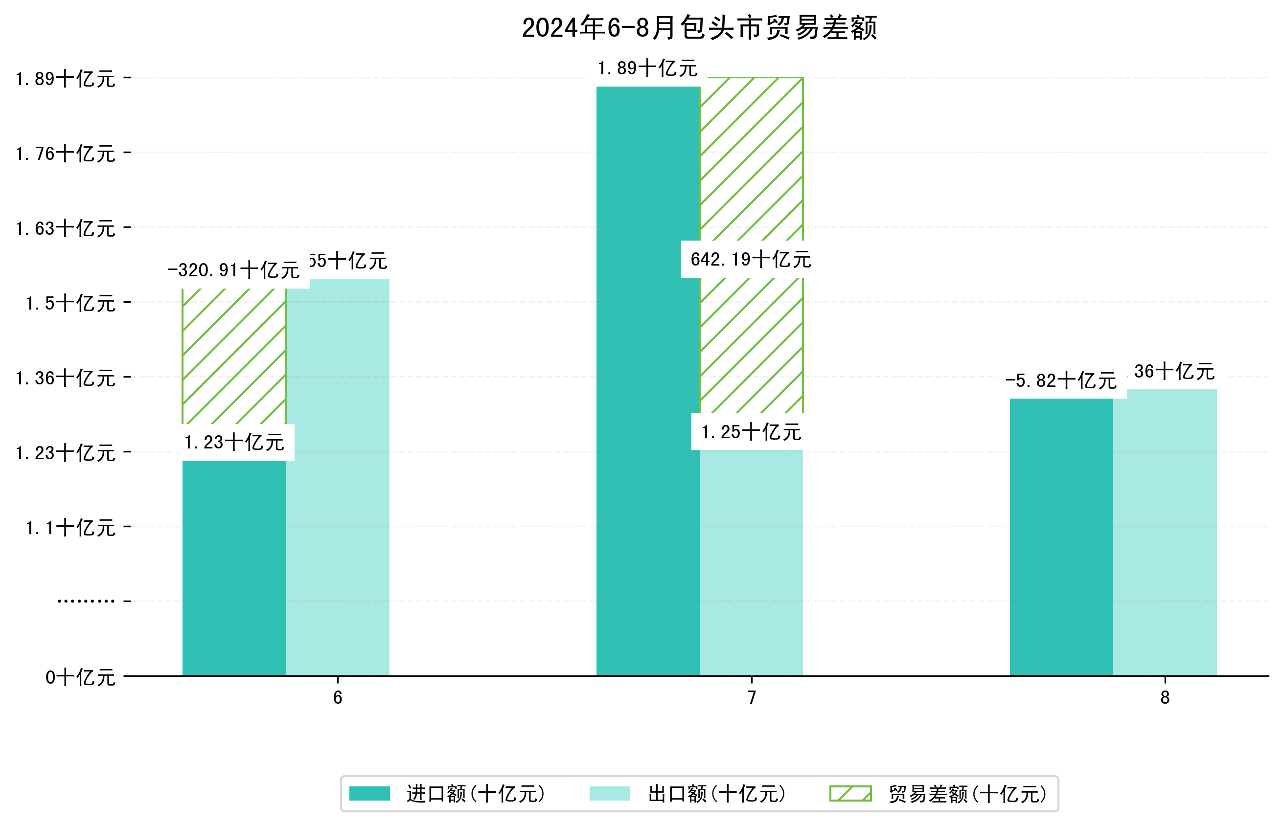 一、2024年8月包头市单月出口总额及进出口差额统计分析