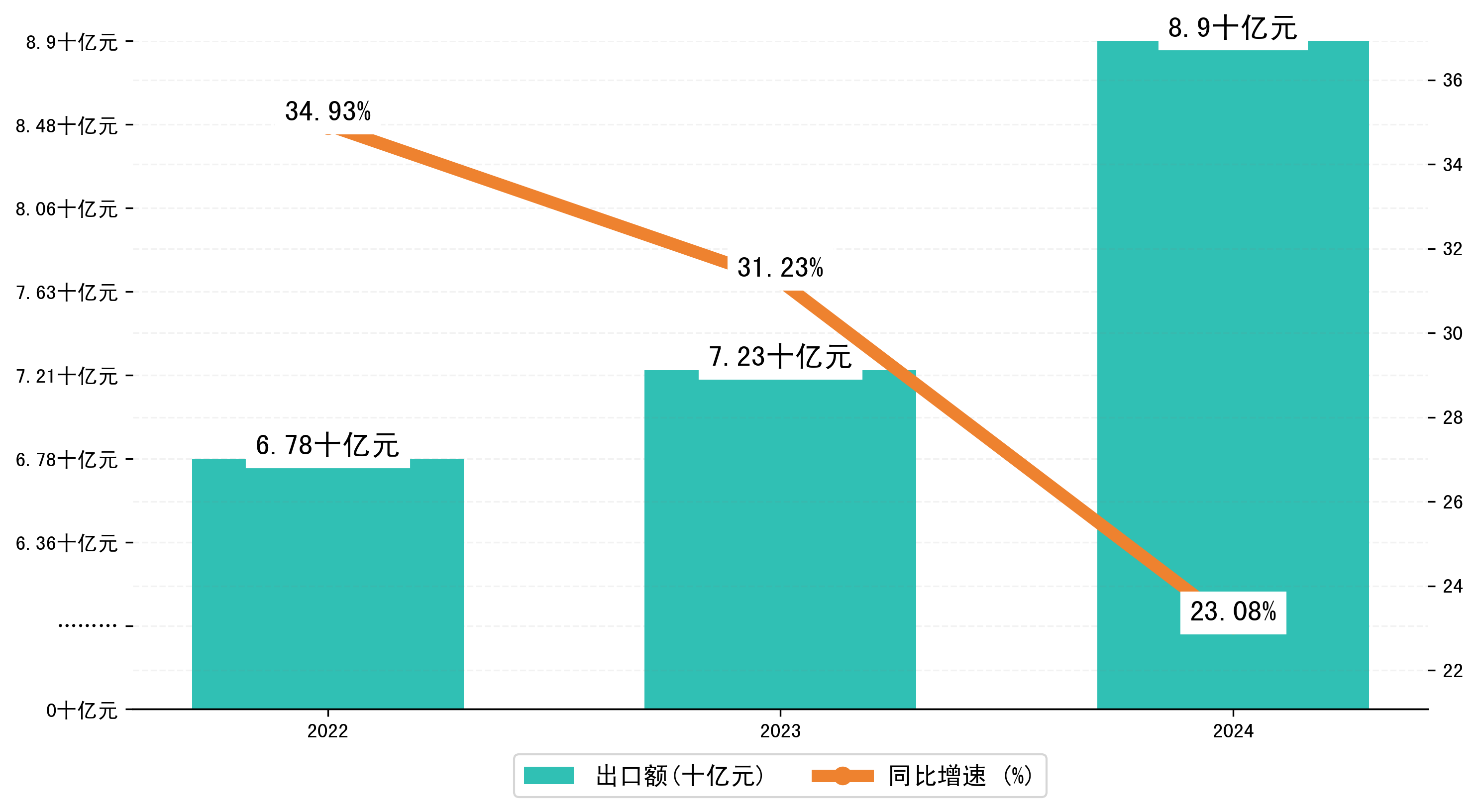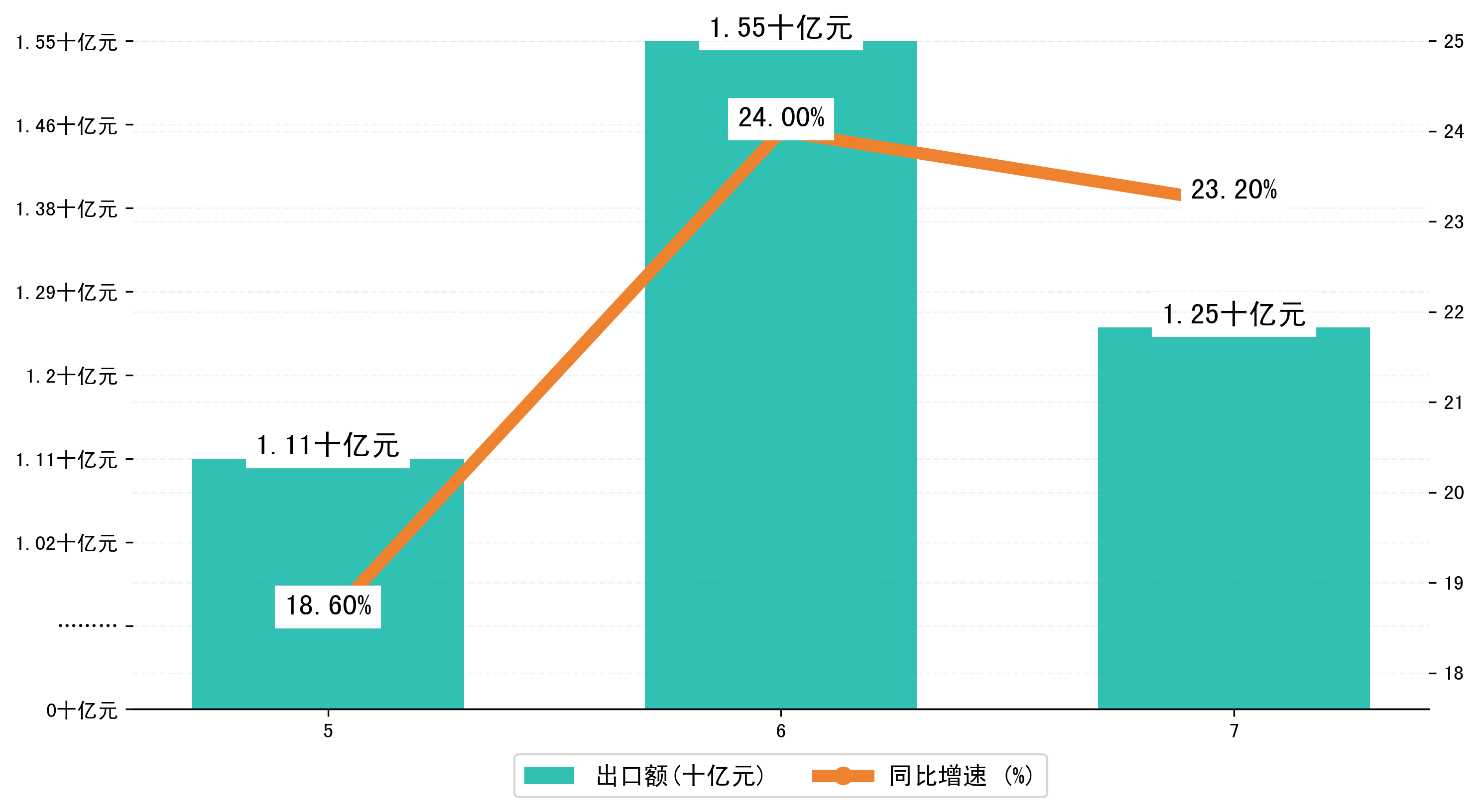 以人民币计,2024年1-7月包头市出口额为89,0268.3207万元,相比上年同期增加了16,6961.7767万元,同比增加了23.20%。