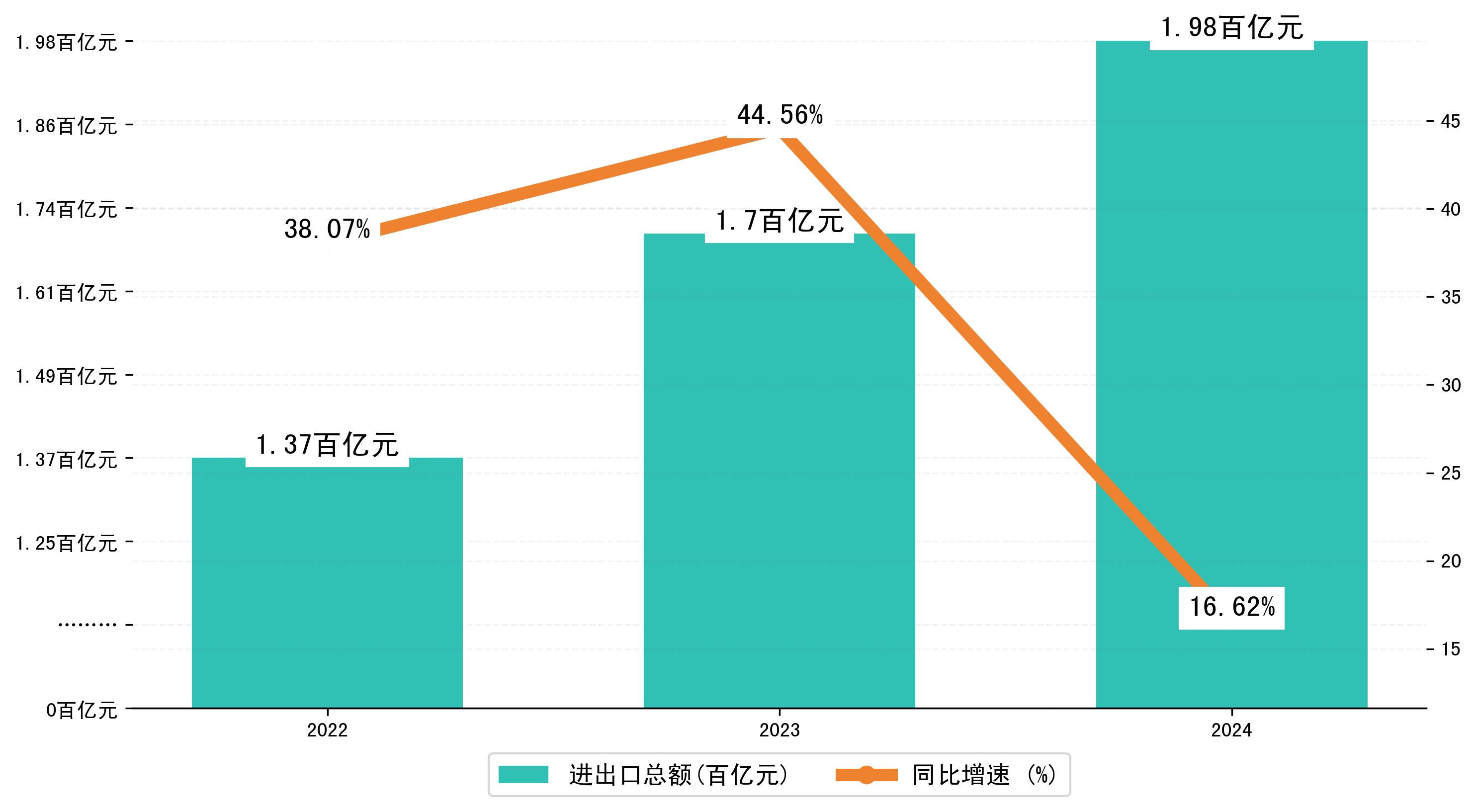 以人民币计,2024年1-7月包头市进出口总额为198,0152.2645万元,相比上年同期增加了28,2174.3251万元,同比增加了17.20%。