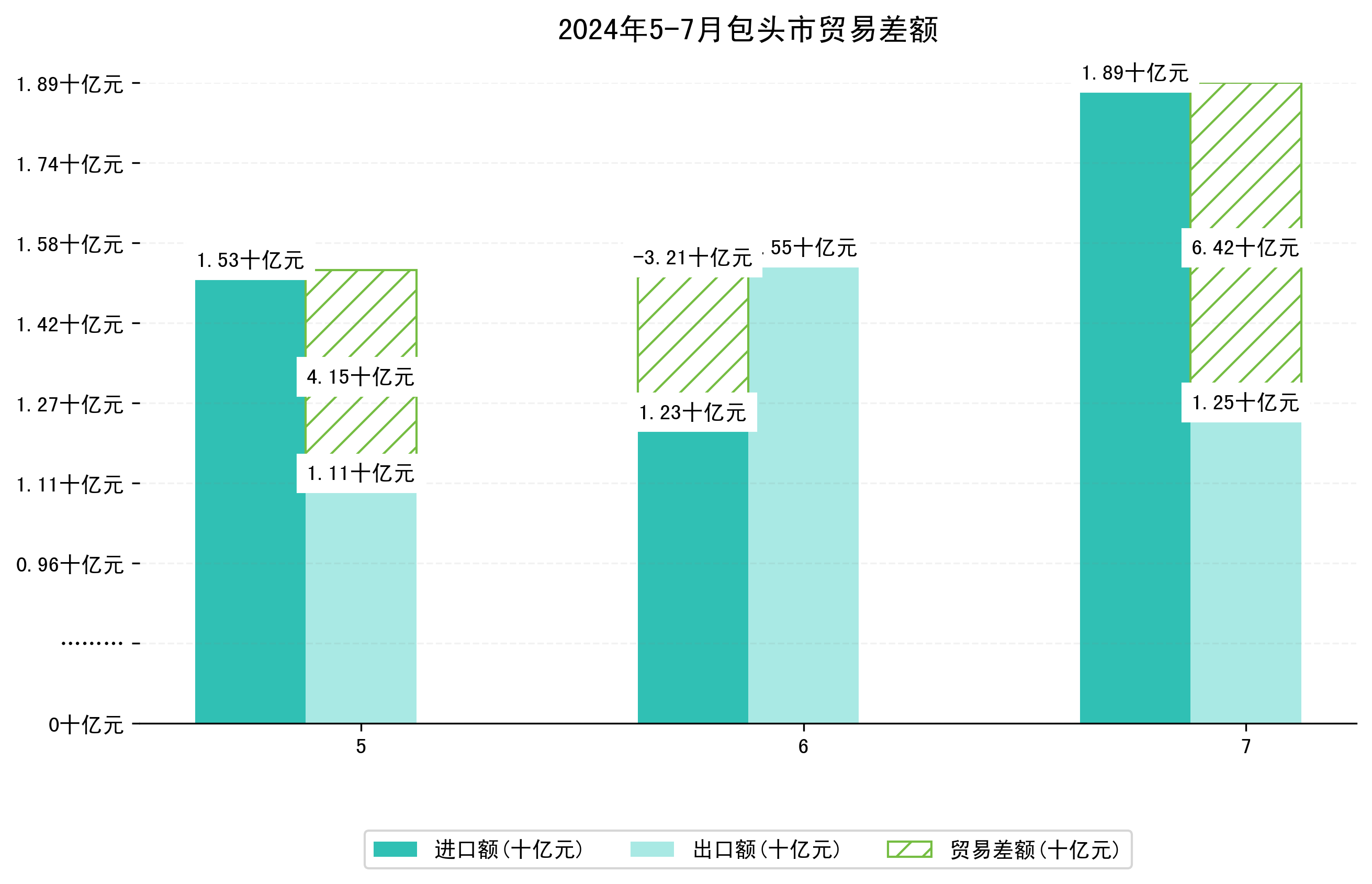 一、2024年7月包头市单月出口总额及进出口差额统计分析