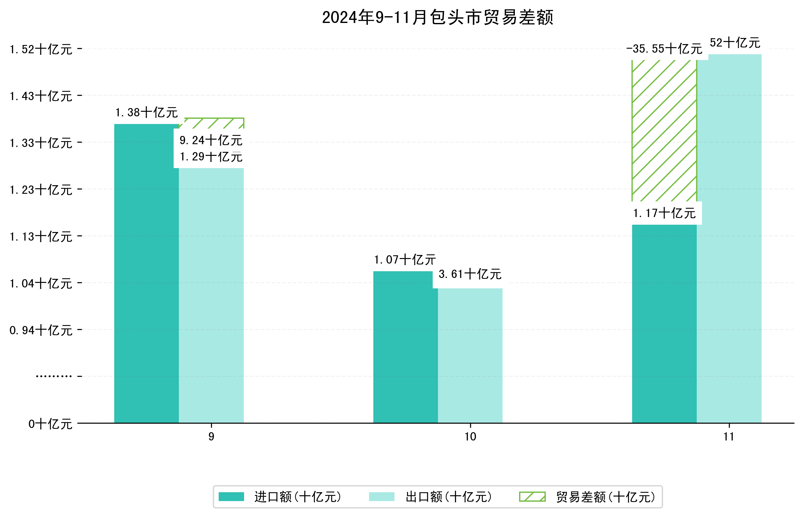 一、2024年11月包头市单月出口总额及进出口差额统计分析