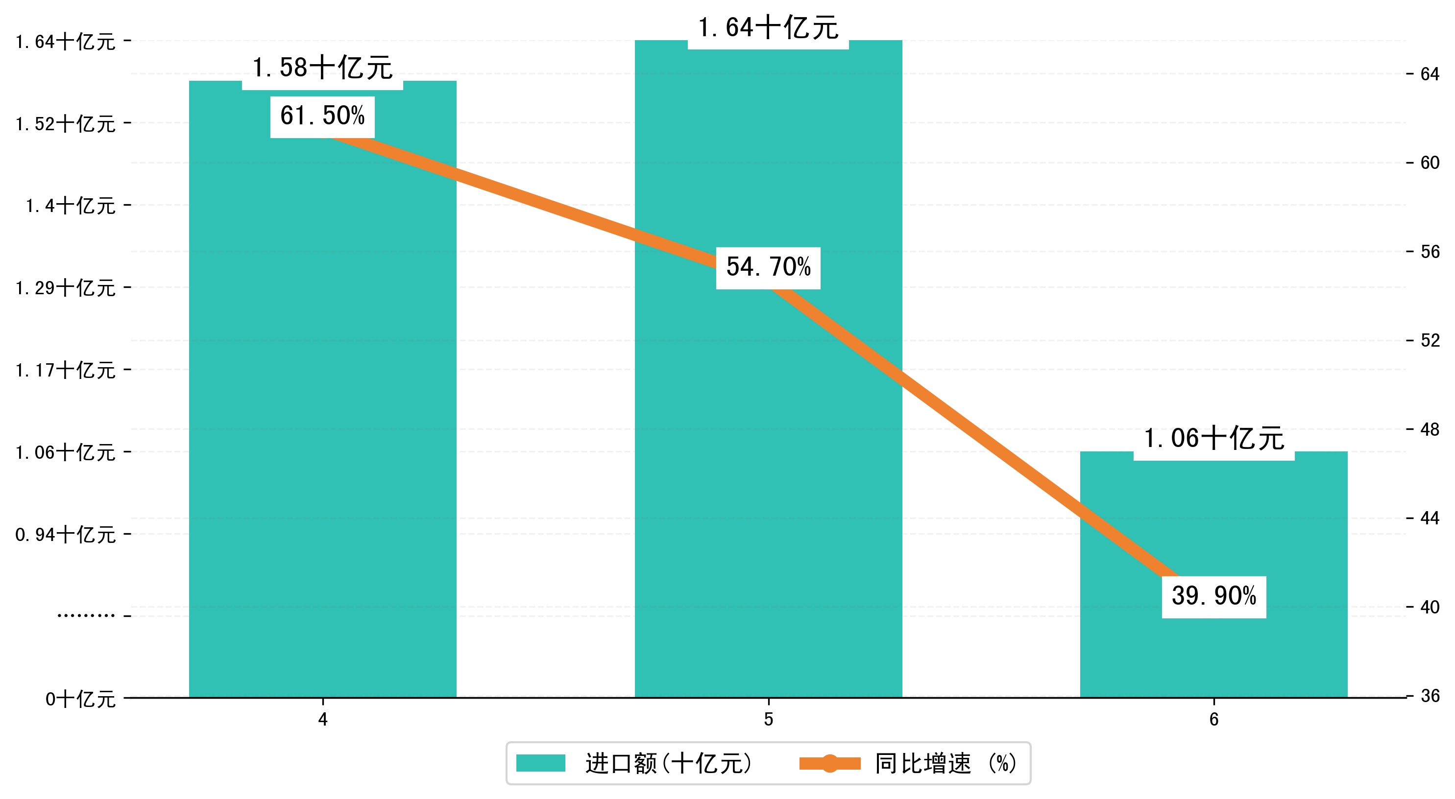 以人民币计,2023年1-6月包头市进口额为82,7713.5468万元,相比上年同期增加了23,7960.9412万元,同比增加了39.90%。