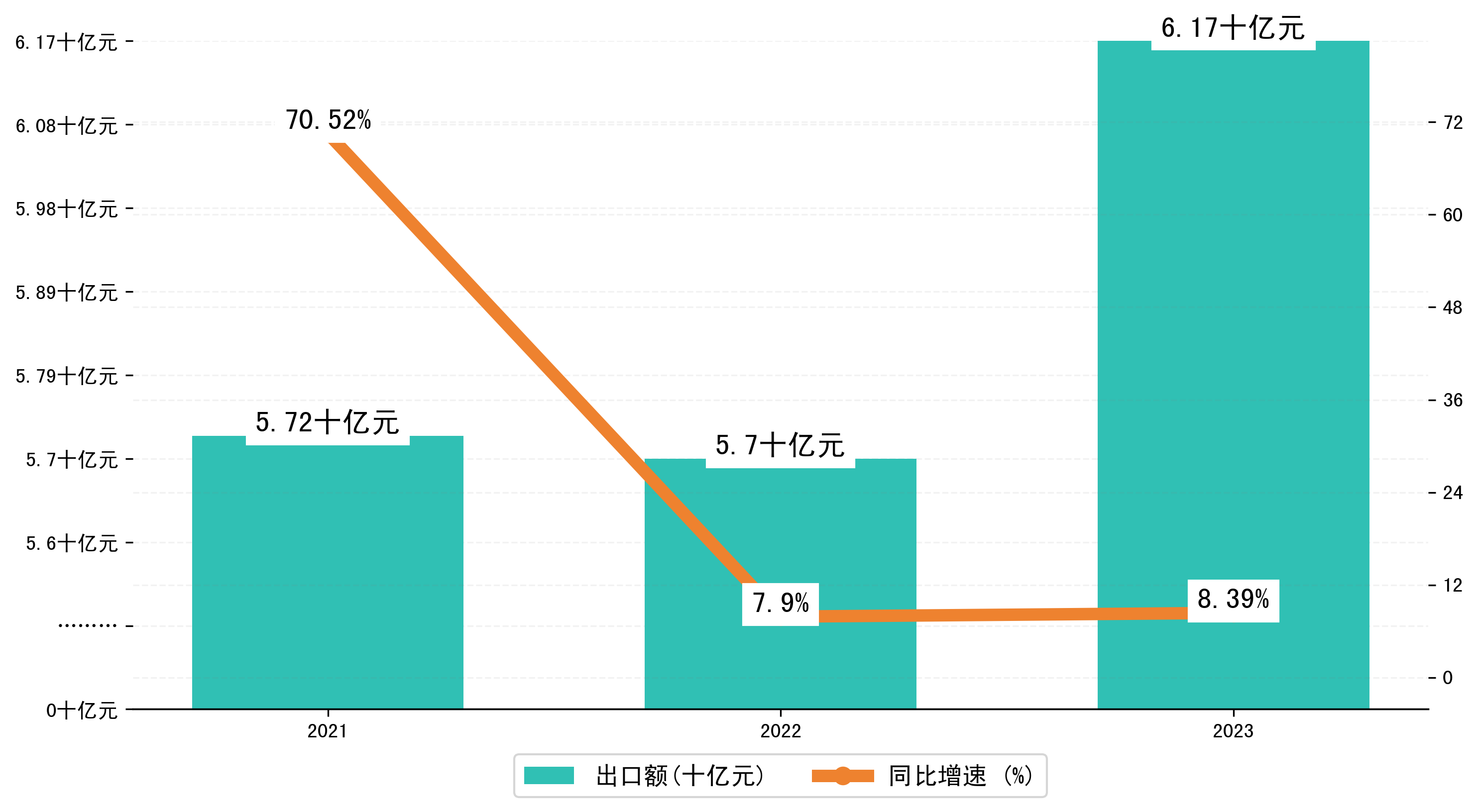以人民币计,2023年1-6月包头市出口额为61,7465.4918万元,相比上年同期增加了4,7797.5414万元,同比增加了8.40%。