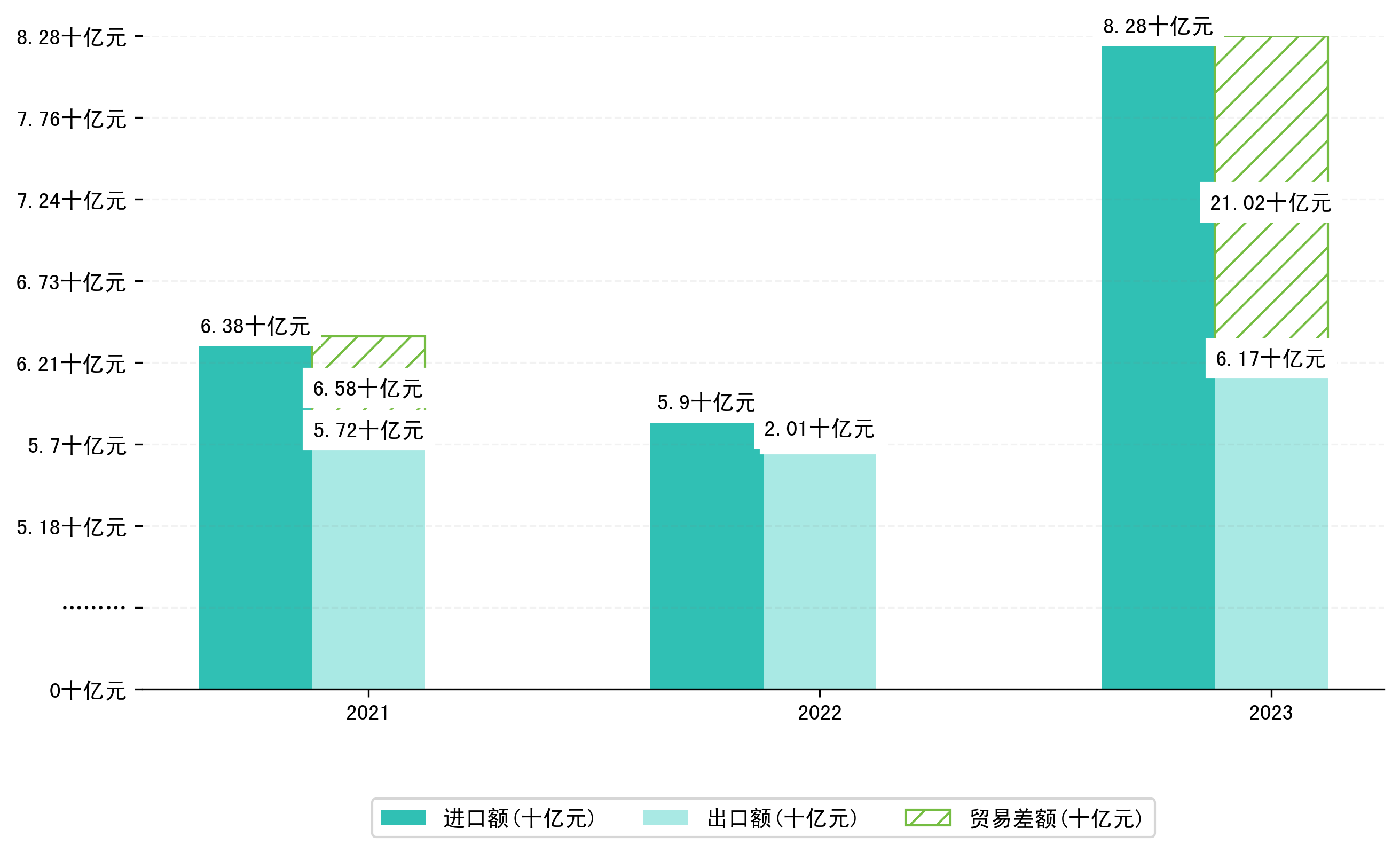 以人民币计,2023年1-6月包头市贸易差额为21,0248,0550万元(贸易逆差),相比上年同期减少了19,0163,3998万元,同比减少946.81%。