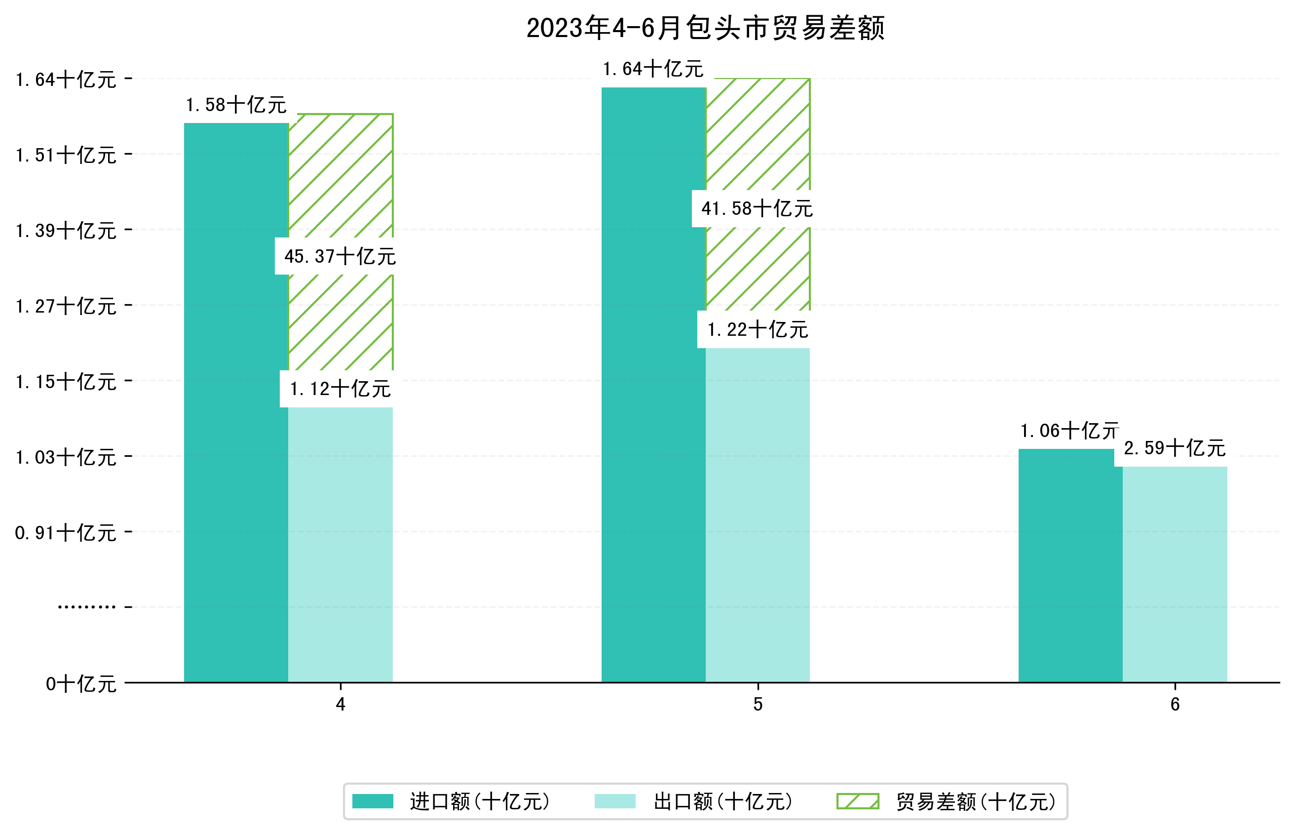 一、2023年6月包头市单月出口总额及进出口差额统计分析