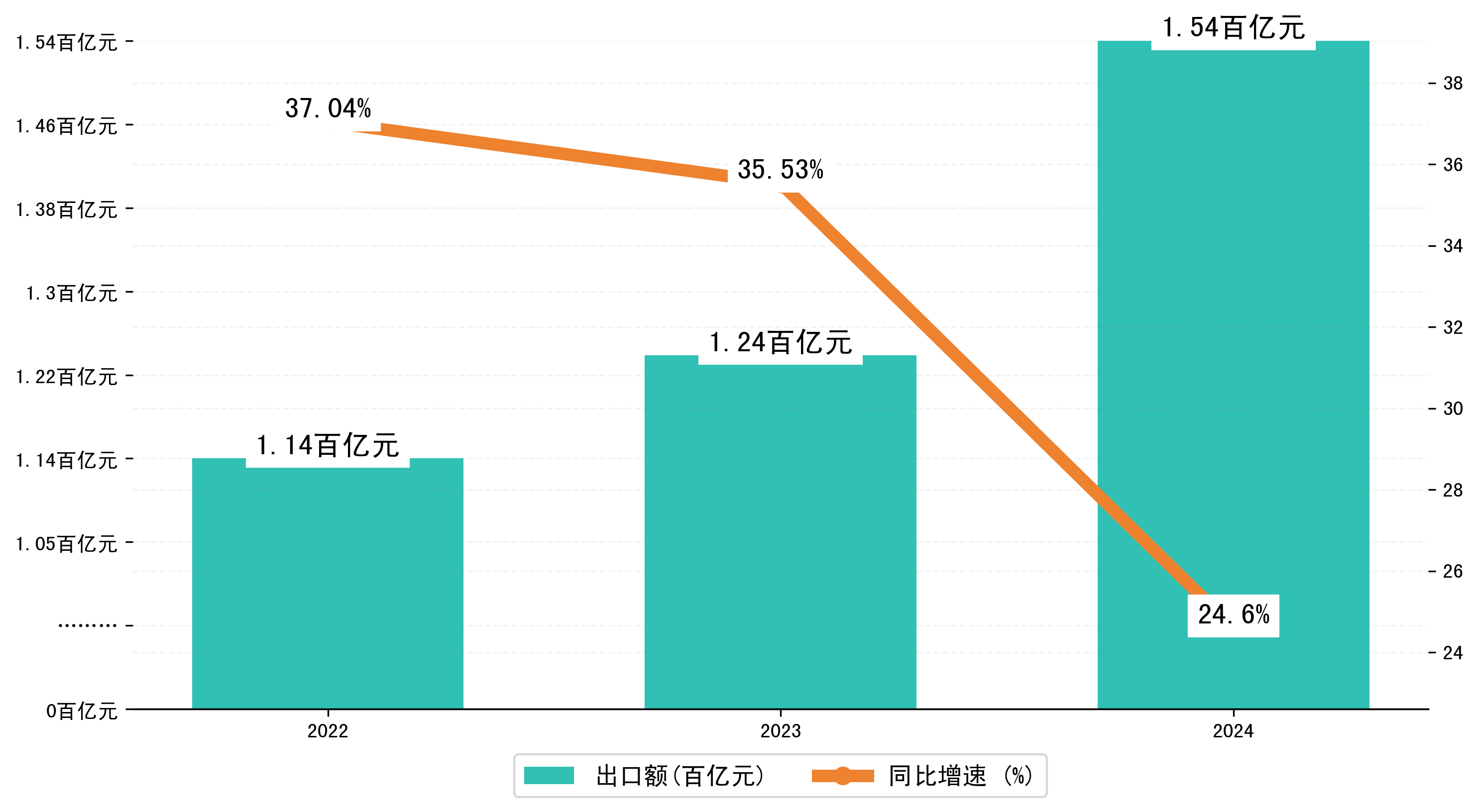 以人民币计,2024年1-12月包头市出口额为153,9217.4541万元,相比上年同期增加了30,3930.8486万元,同比增加了26.80%。