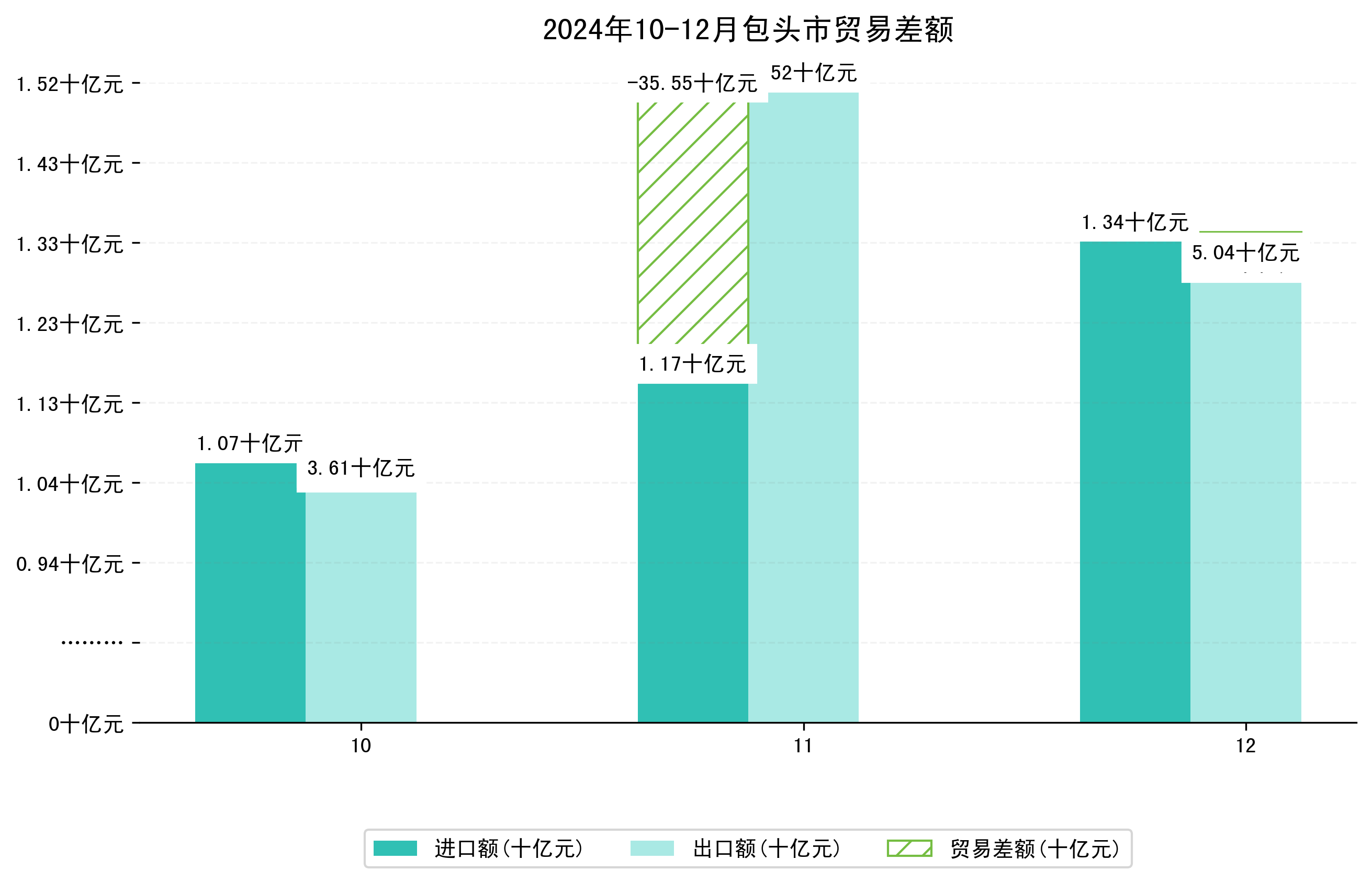 一、2024年12月包头市单月出口总额及进出口差额统计分析