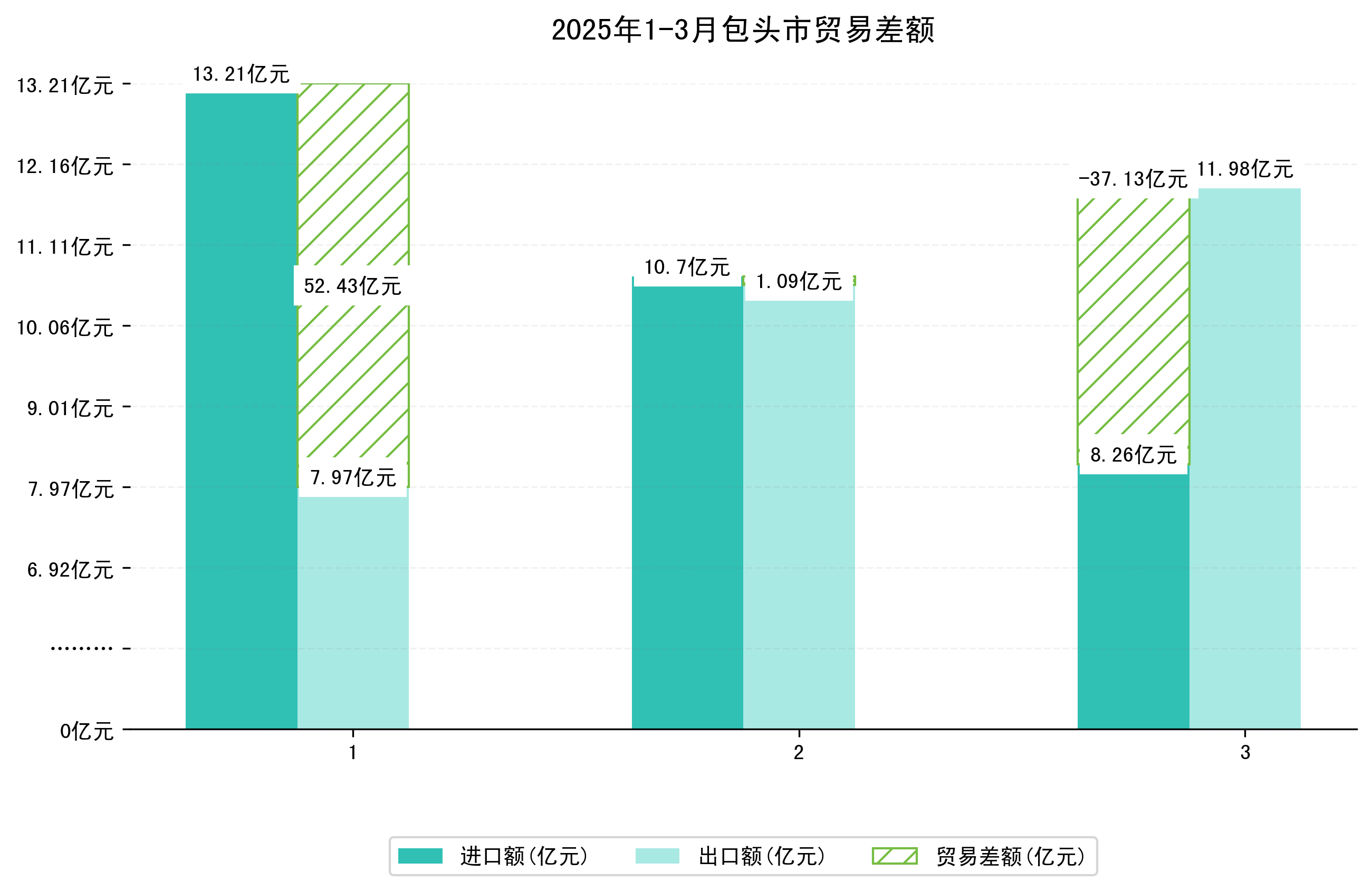 一、2025年3月包头市单月出口总额及进出口差额统计分析