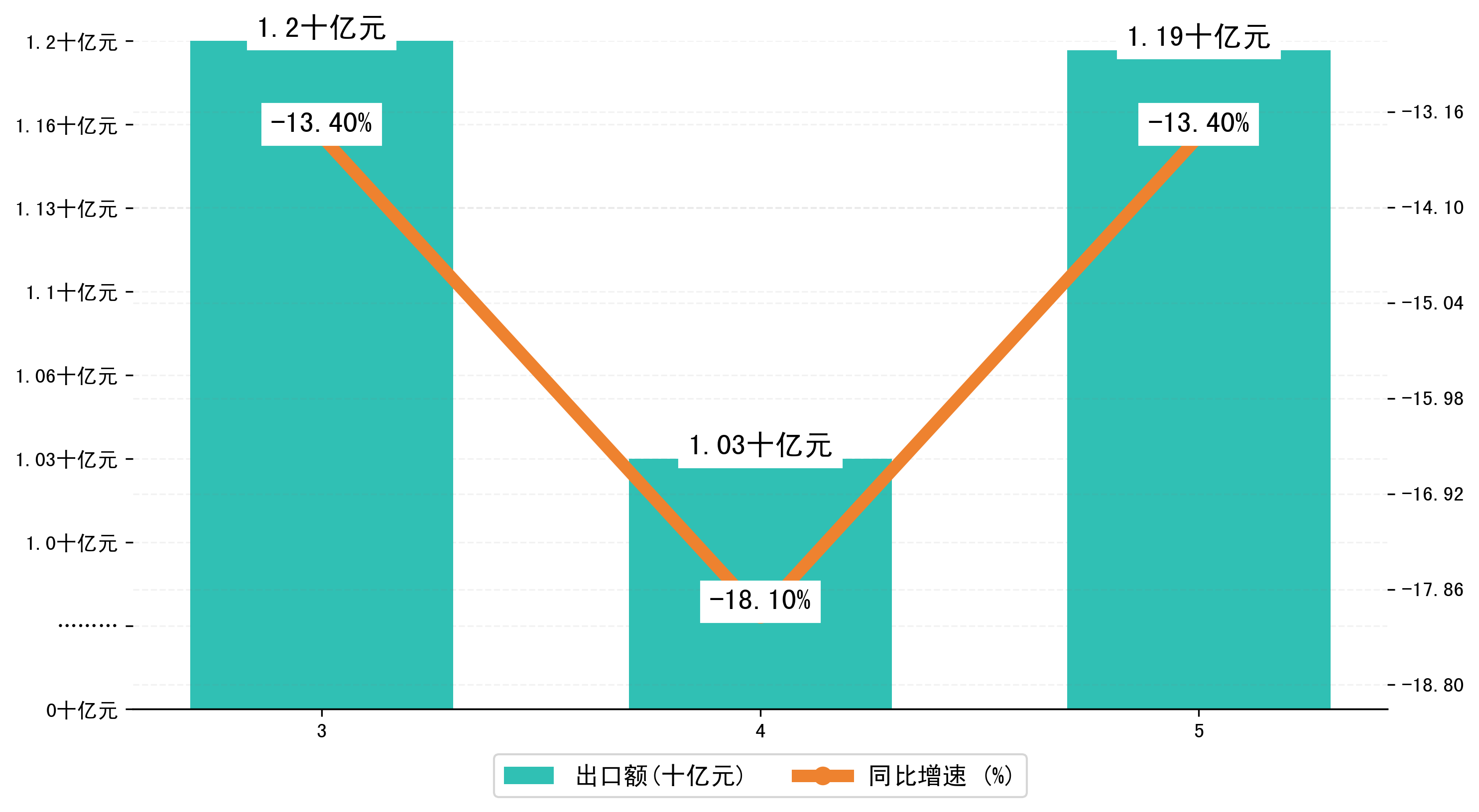 以人民币计,2025年1-5月包头市出口额为52,7865.0536万元,相比上年同期减少了8,2197.4011万元,同比减少了-13.40%。
