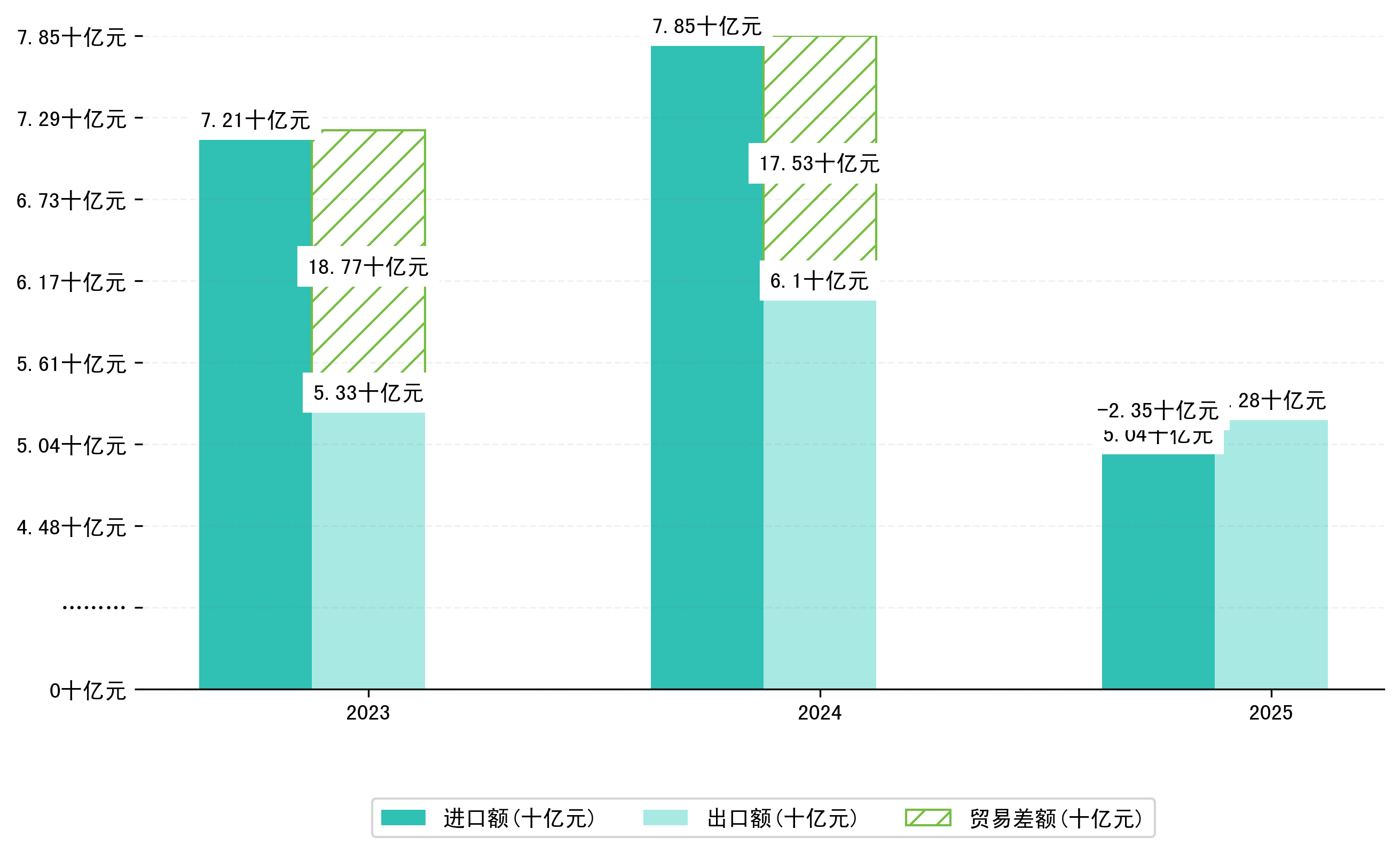 以美元计,2025年1-5月包头市贸易差额为3228,2467万美元(贸易顺差),相比上年同期增加了2,7949,5061万美元,同比增加-113.06%。