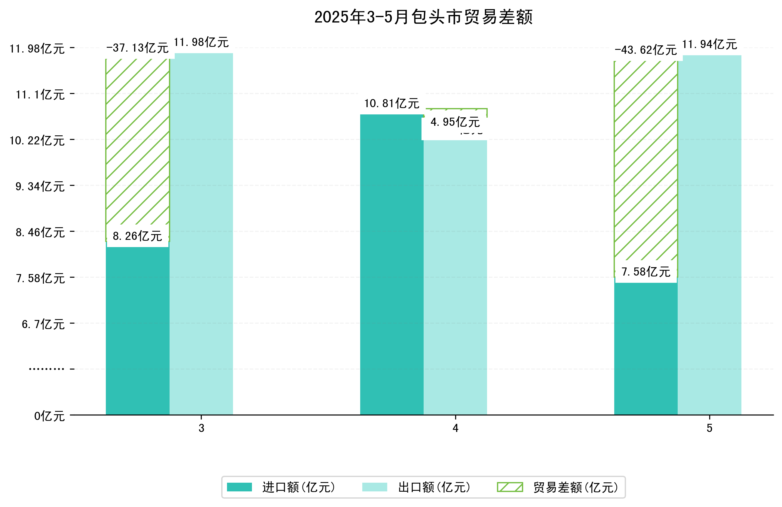 一、2025年5月包头市单月出口总额及进出口差额统计分析