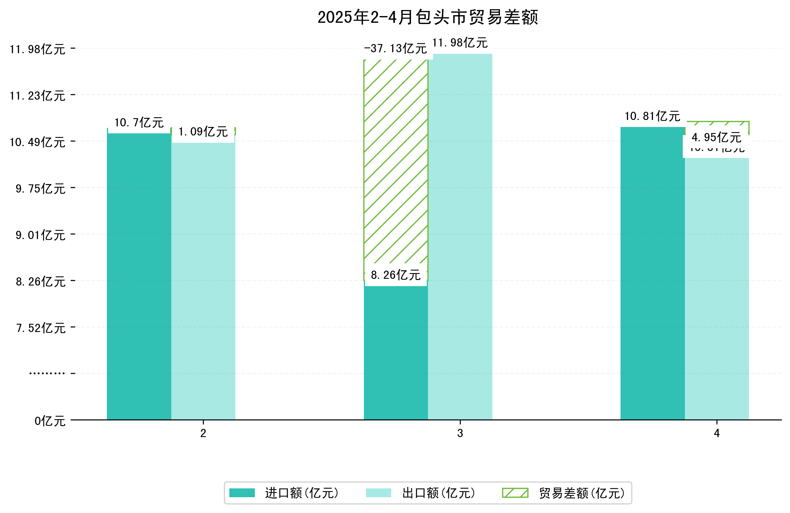 一、2025年4月包头市单月出口总额及进出口差额统计分析