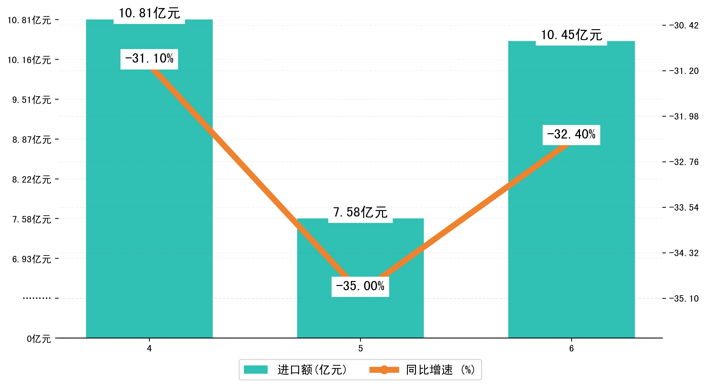 以美元计,2025年1-6月包头市进口额为8,4521.6939万美元,相比上年同期减少了4,3259.7478万美元,同比减少-33.20%。