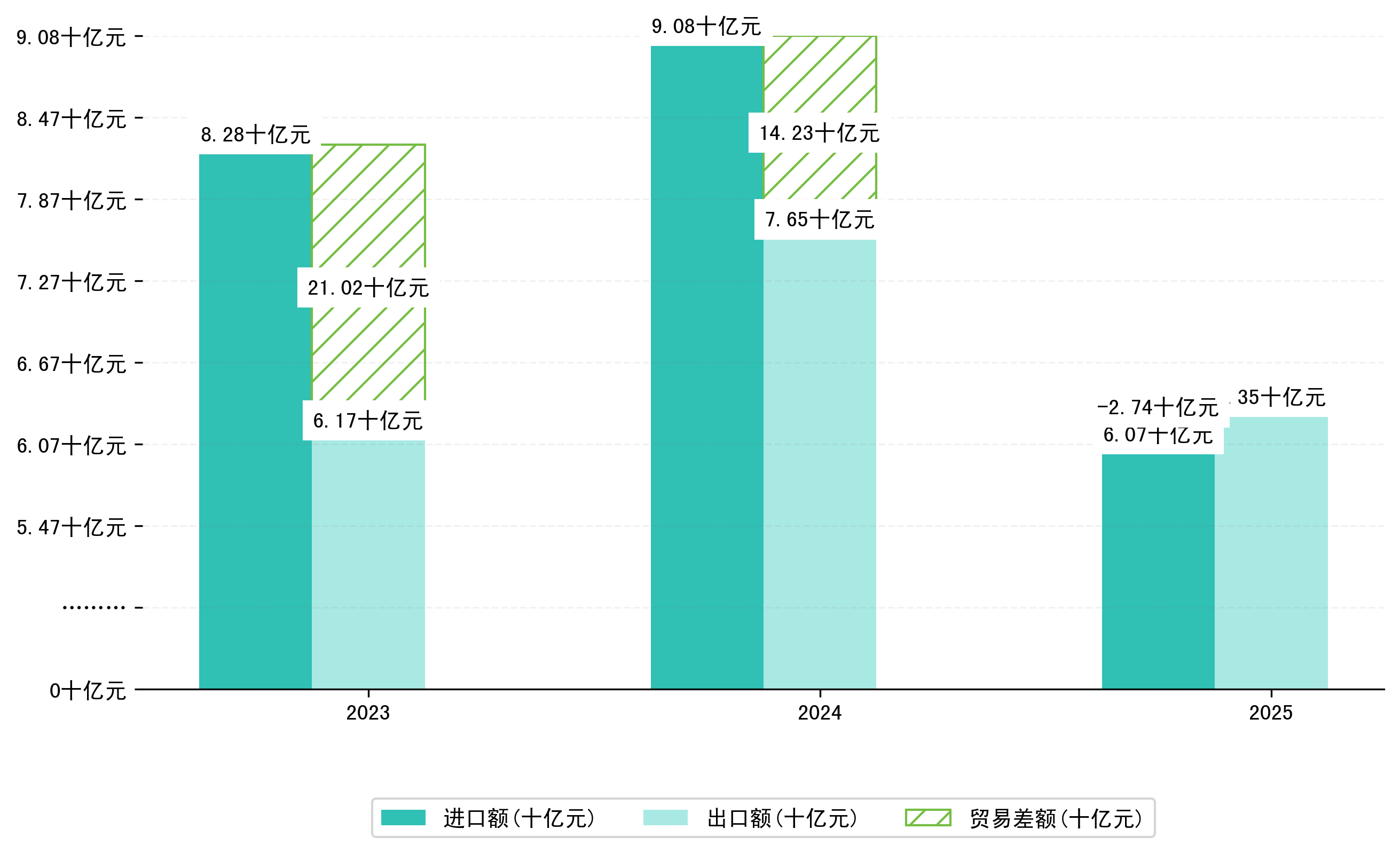 以人民币计,2025年1-6月包头市贸易差额为2,7378,8497万元(贸易顺差),相比上年同期增加了16,9630,9776万元,同比增加-119.25%。