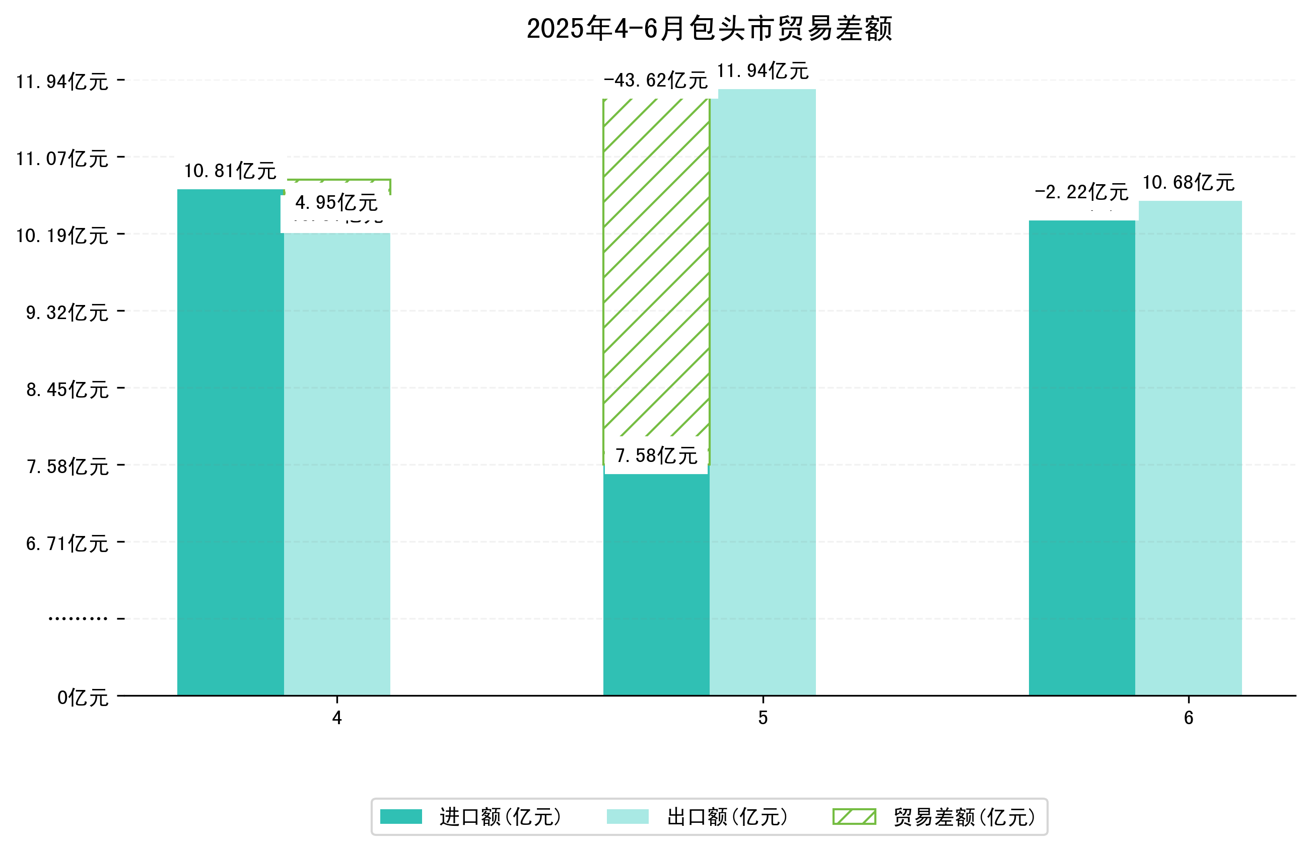 一、2025年6月包头市单月出口总额及进出口差额统计分析