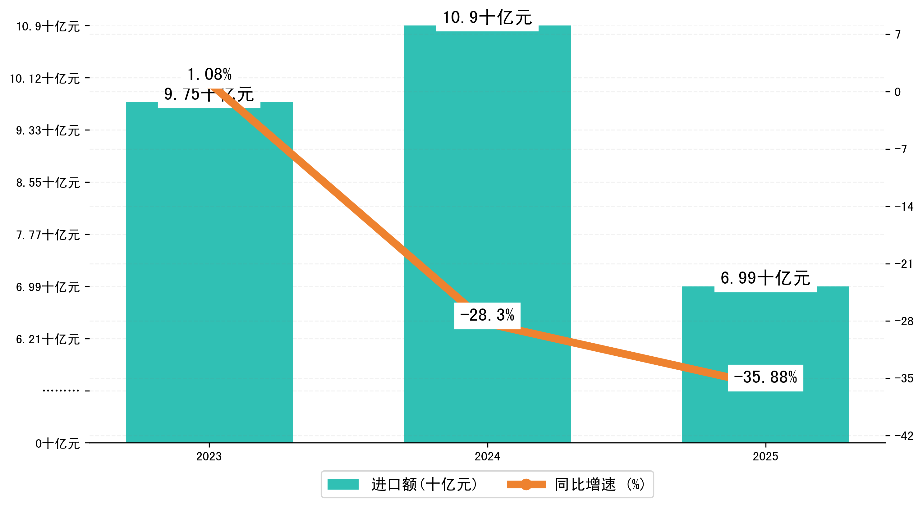 以人民币计,2025年7月包头市进口额为9,2134.9843万元,相比上月减少了1,2408.1373万元;相比上年同期减少了9,7082.8166万元,同比减少了-35.40%。