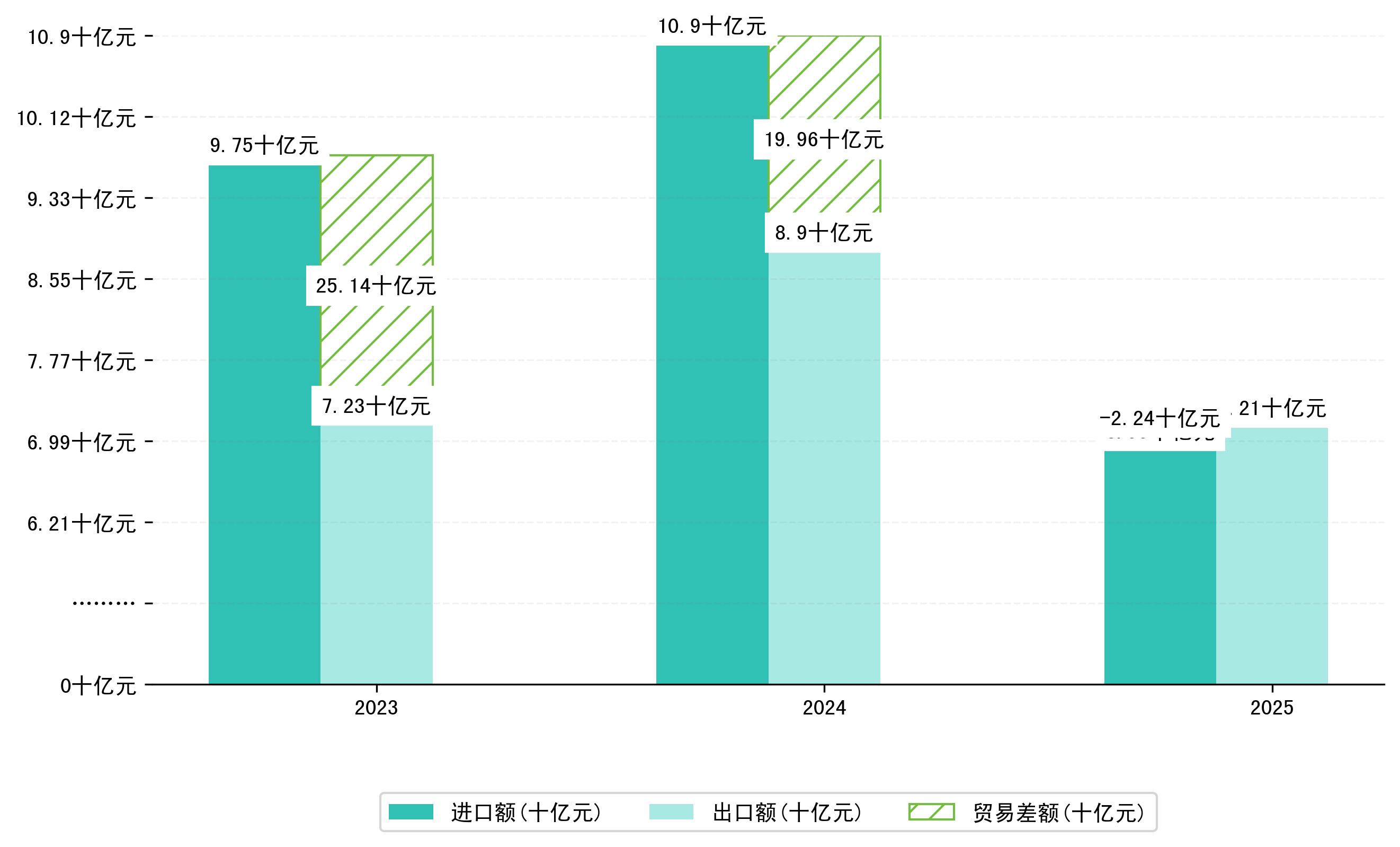 以美元计,2025年1-7月包头市贸易差额为3100,5510万美元(贸易顺差),相比上年同期增加了3,1235,2350万美元,同比增加-111.02%。