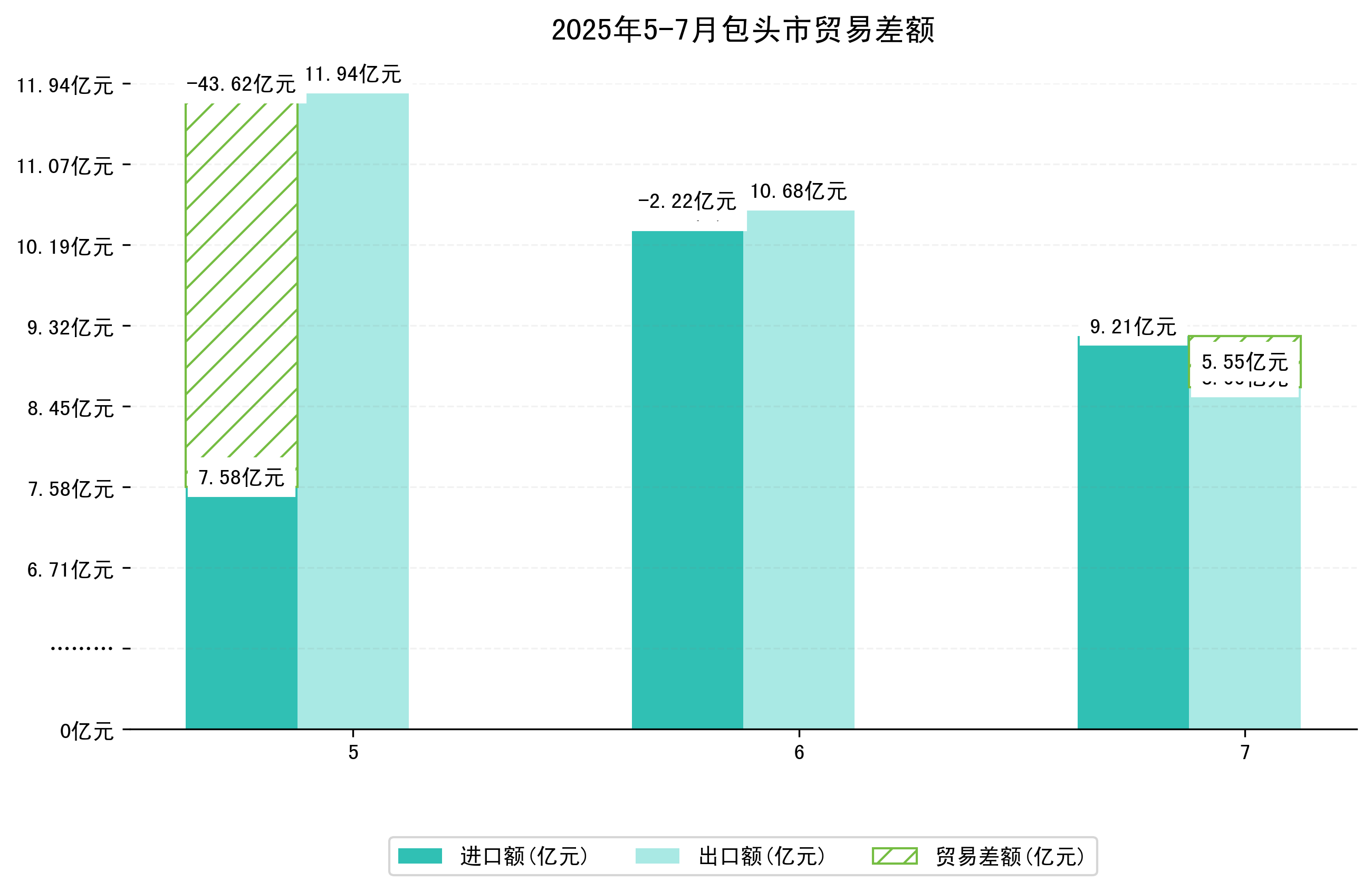 一、2025年7月包头市单月出口总额及进出口差额统计分析