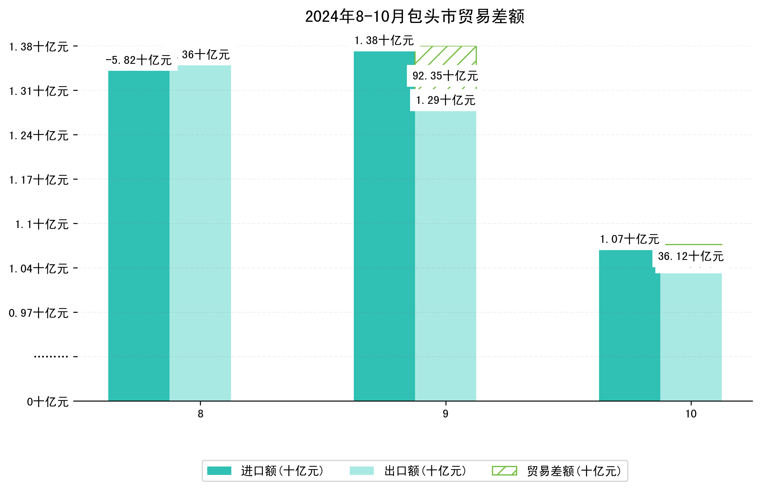 一、2024年10月包头市单月出口总额及进出口差额统计分析