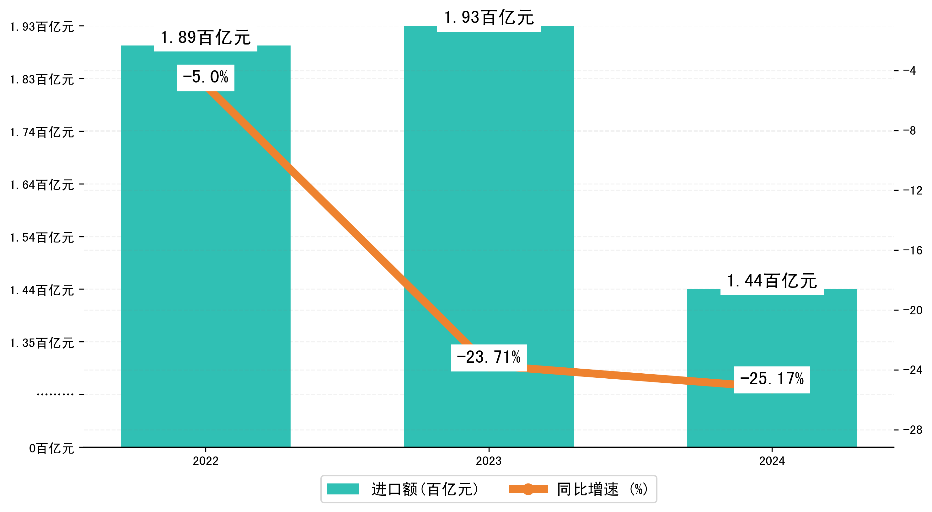 以人民币计,2024年1-10月北海市进口额为144,3726.7885万元,相比上年同期减少了48,5570.6975万元,同比减少了-22.30%。