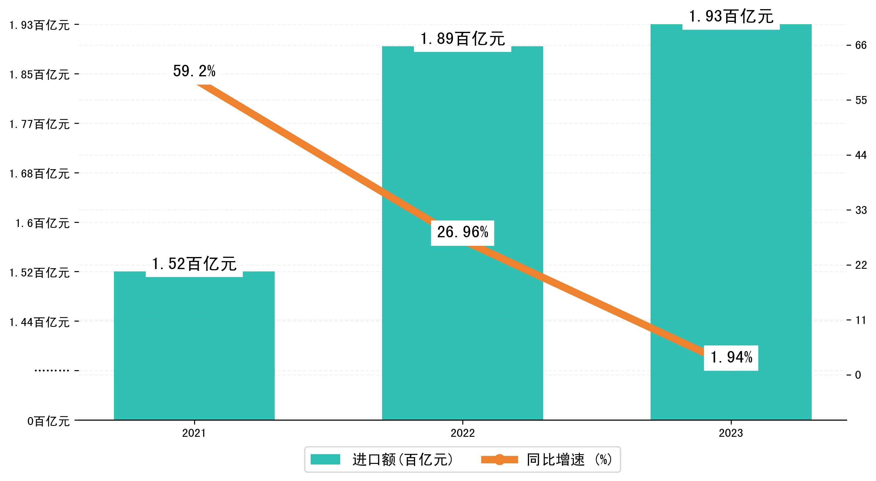 以人民币计,2023年1-10月北海市进口额为192,9297.486万元,相比上年同期增加了3,6805.6358万元,同比增加了2.10%。