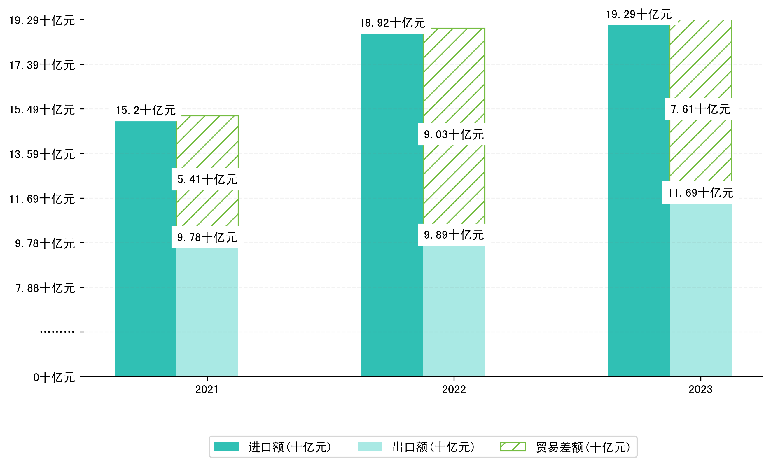 以人民币计,2023年1-10月北海市贸易差额为76,0600,5765万元(贸易逆差),相比上年同期增加了14,2619,6858万元,同比增加-15.79%。