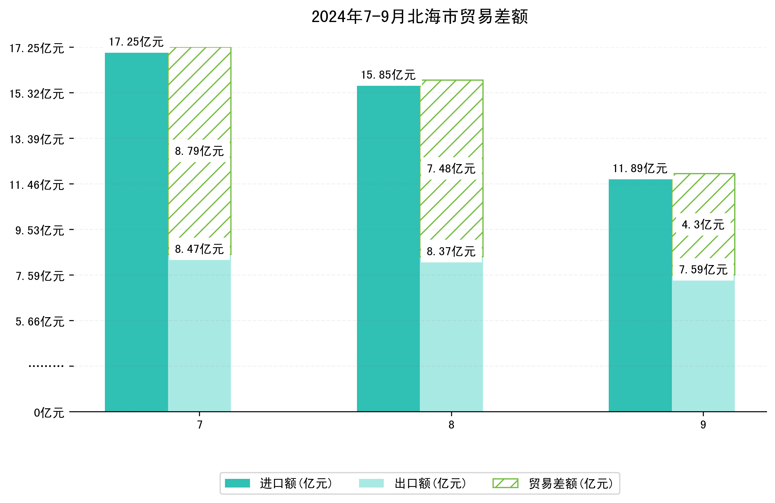 (图一:2024年7-9月北海市进出口总额)