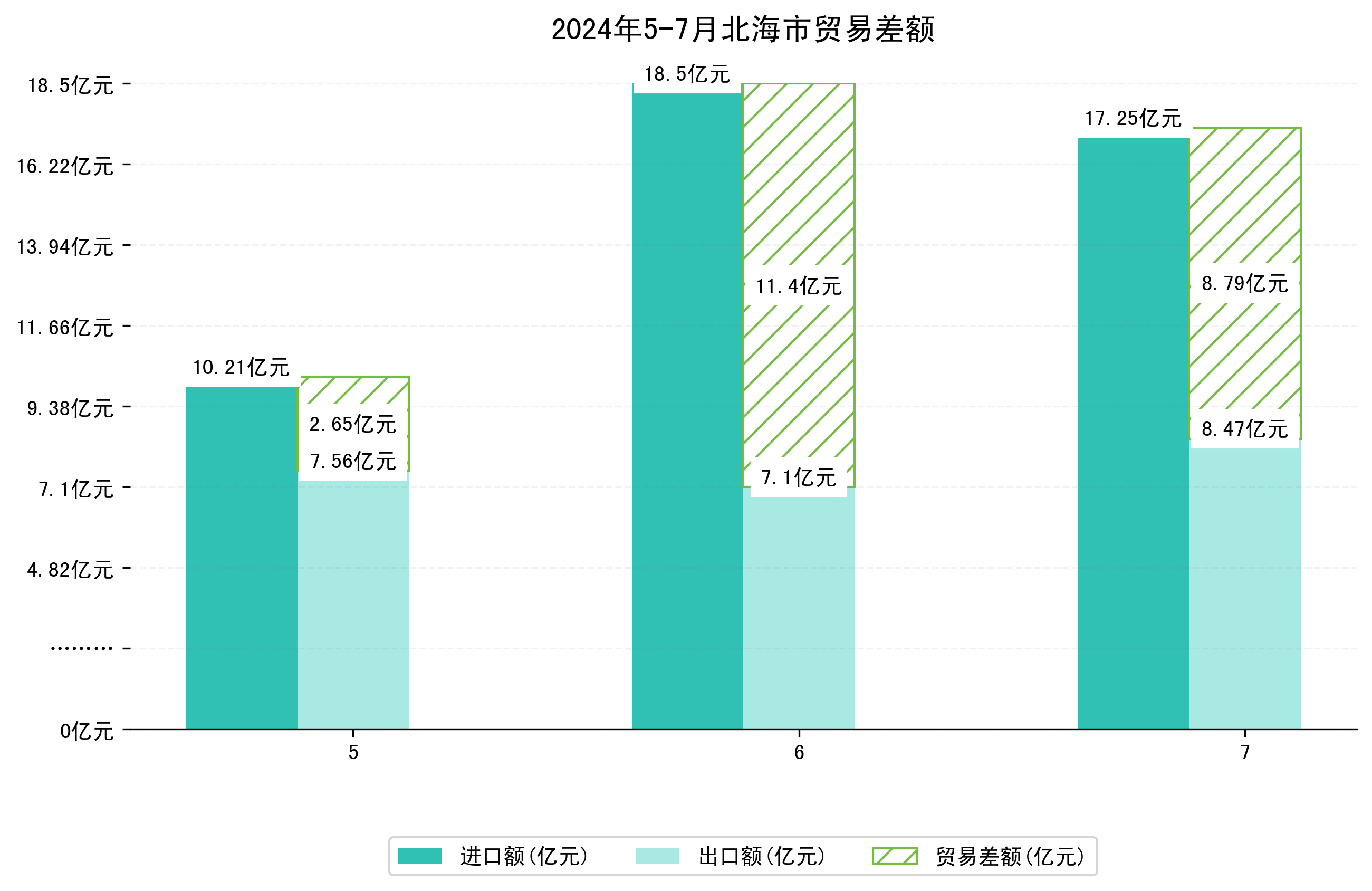 (图一:2024年5-7月北海市进出口总额)