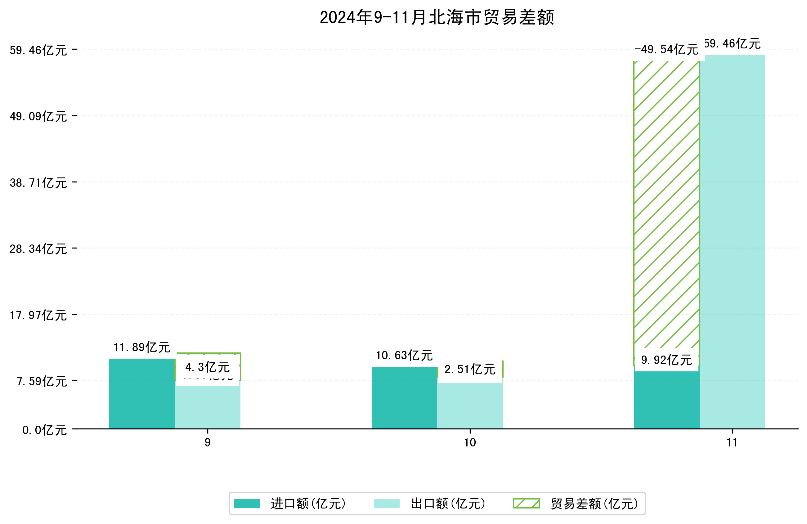 (图四:2024年9-11月北海市贸易差额)