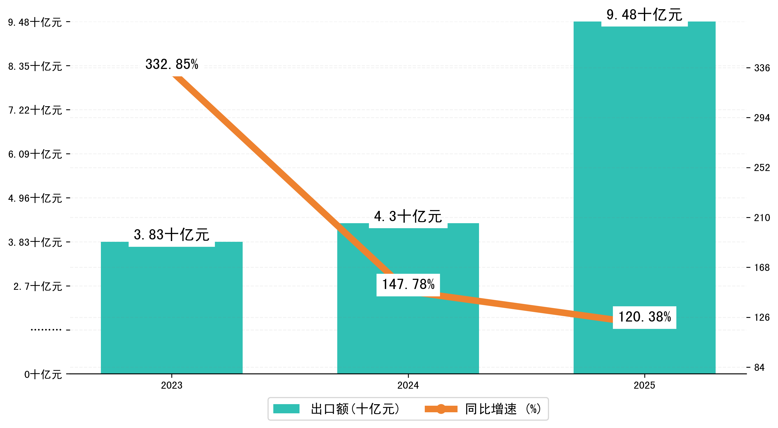 以人民币计,2025年1-3月北海市出口额为94,7966.0585万元,相比上年同期增加了51,7823.268万元,同比增加了120.50%。