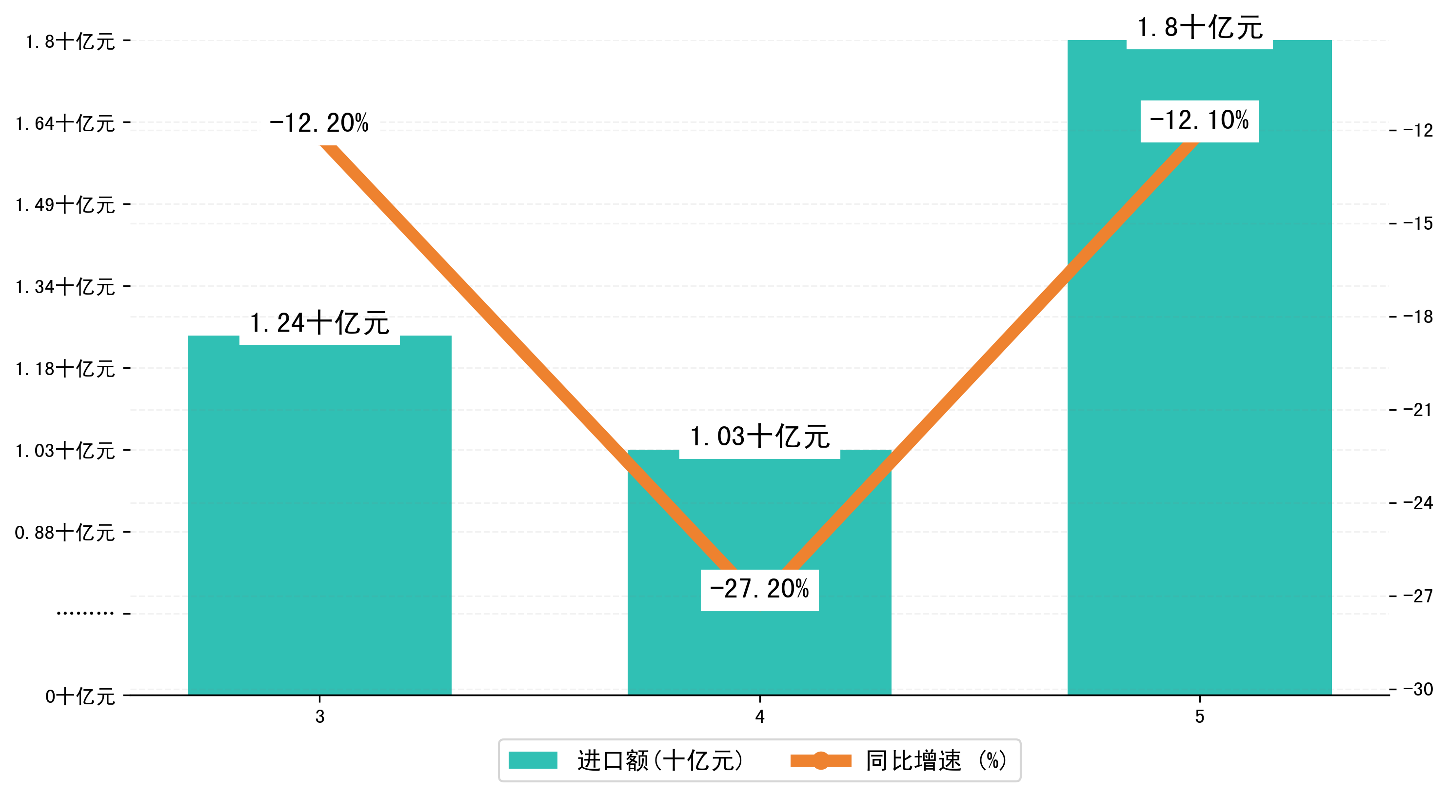 以人民币计,2025年5月北海市进口额为17,9779.1957万元,相比上月增加了7,6780.2295万元;相比上年同期增加了7,7637.2682万元,同比减少了-12.10%。