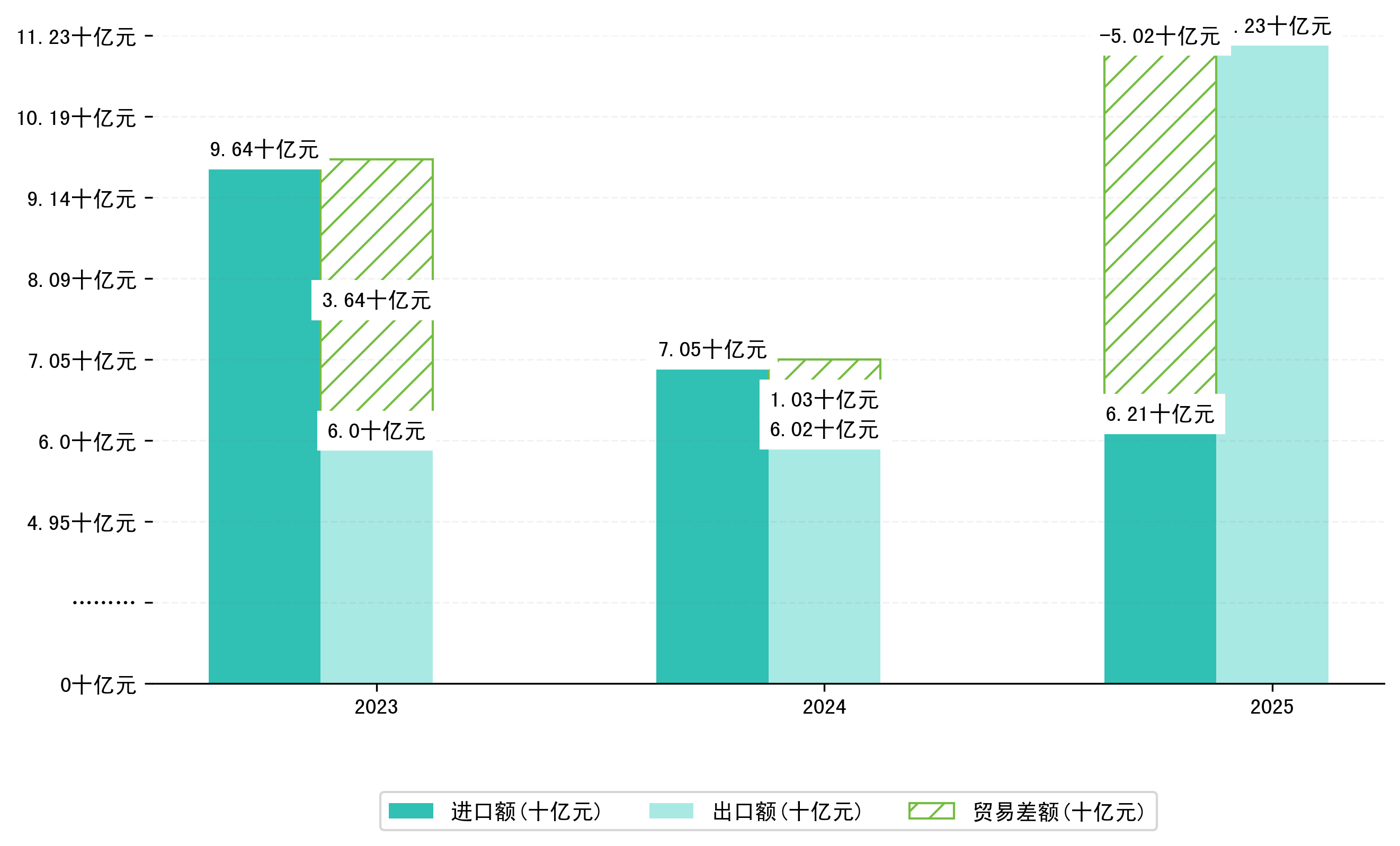以美元计,2025年5月北海市贸易差额为1,2967,0159万美元(贸易逆差),相比上月减少了1,0982,4931万美元;相比上年同期减少了9239,4058万美元,同比减少247.86%。
